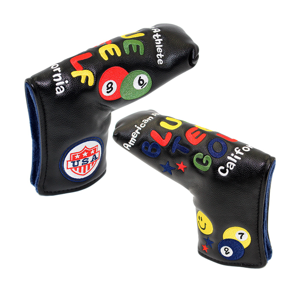 △【PTB-ブラック】ブルーティーゴルフ【スマイル&ピンボール】ブレード型パター用ヘッドカバー BLUE TEE GOLF HC-001 送料無料