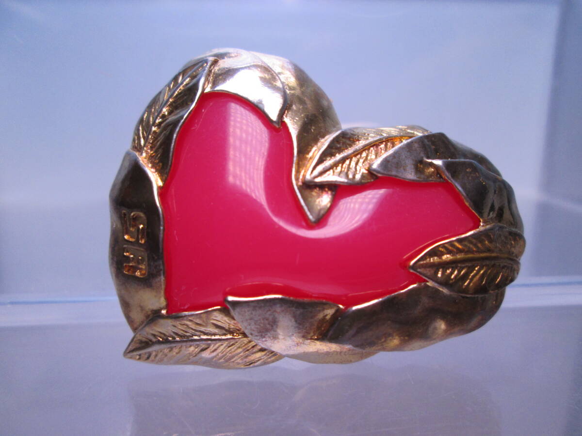 ☆SONIA RYKIEL ソニアリキエル ゴールド&ピンク ハートのブローチ 23,1g 正規品