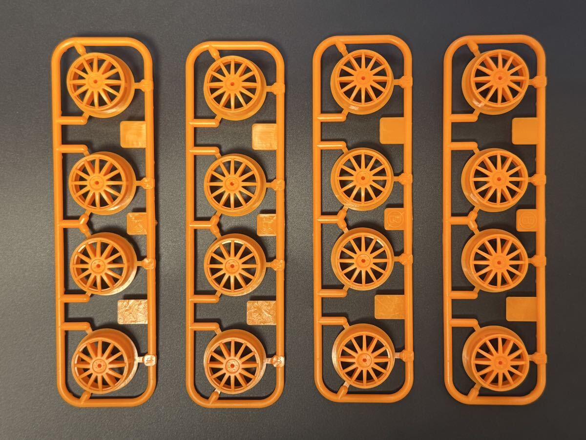 ミニ四駆 ローハイトホイールフィン オレンジ PP の4個セットです。