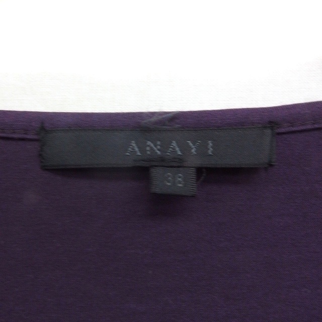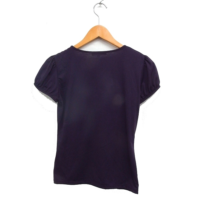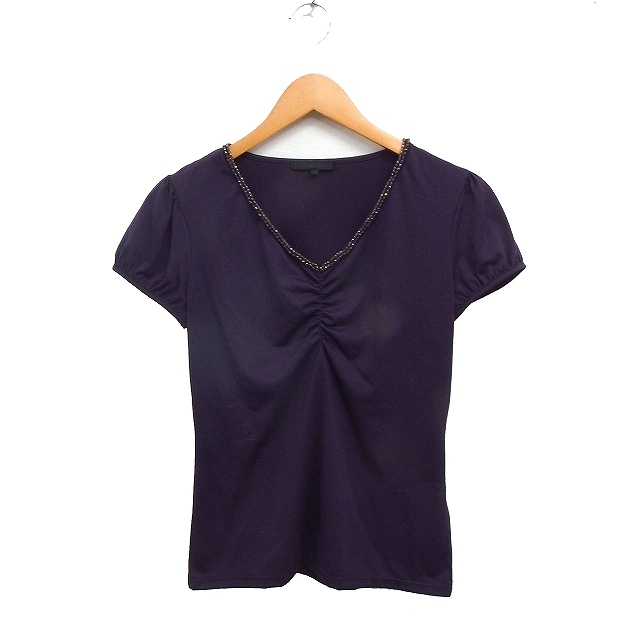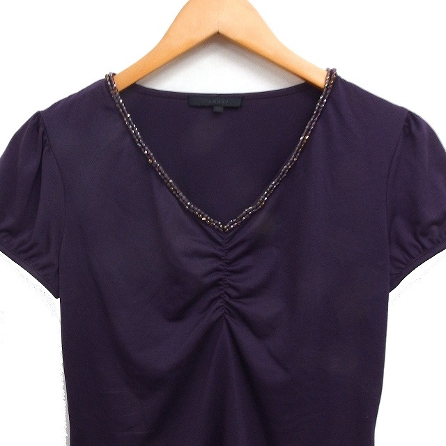 アナイ ANAYI ギャザー パフスリーブ カットソー Vネック ビーズ装飾 無地 38 パープル 紫 /FT20 レディース