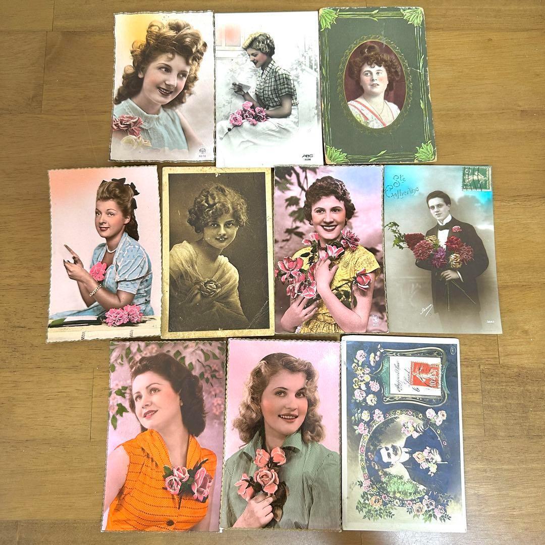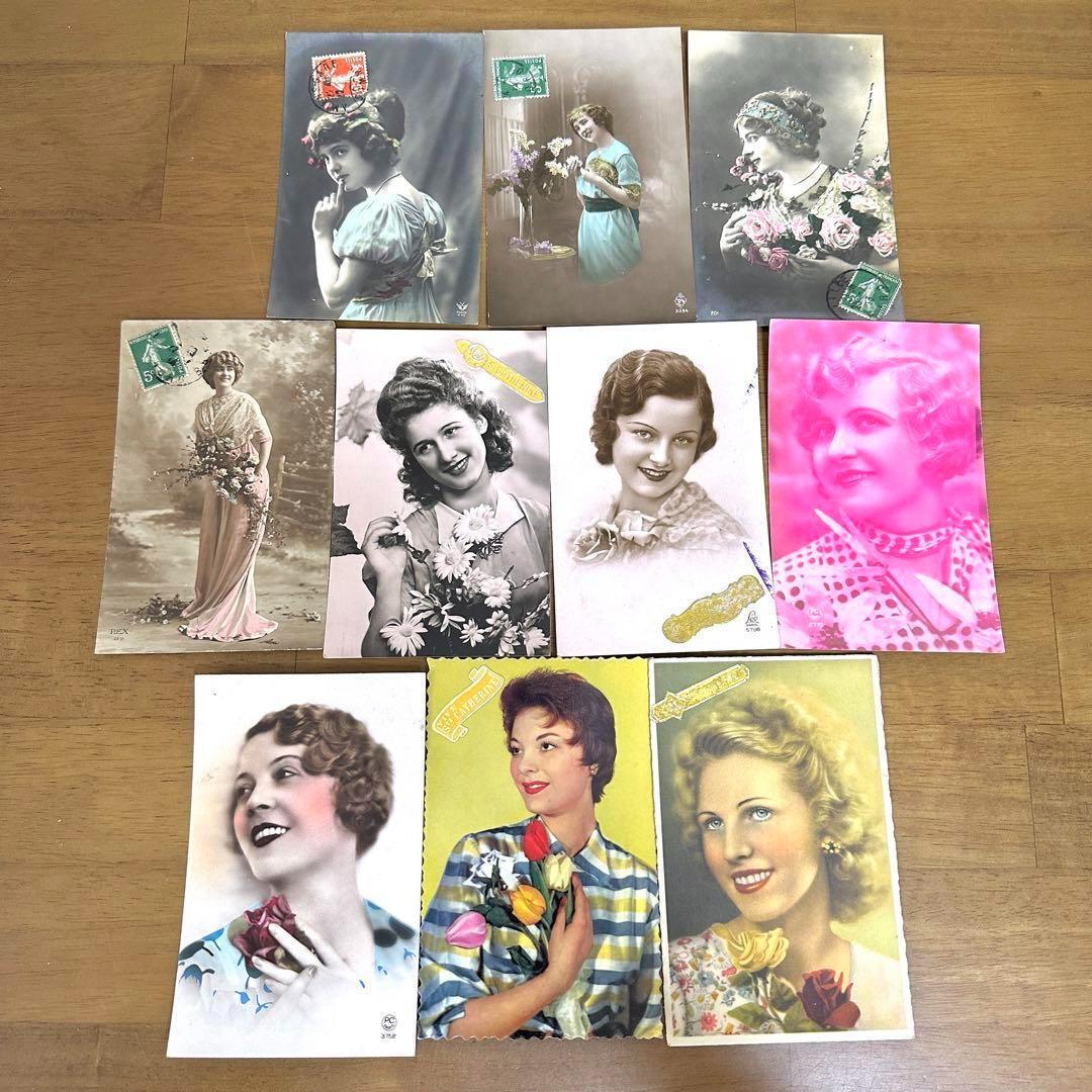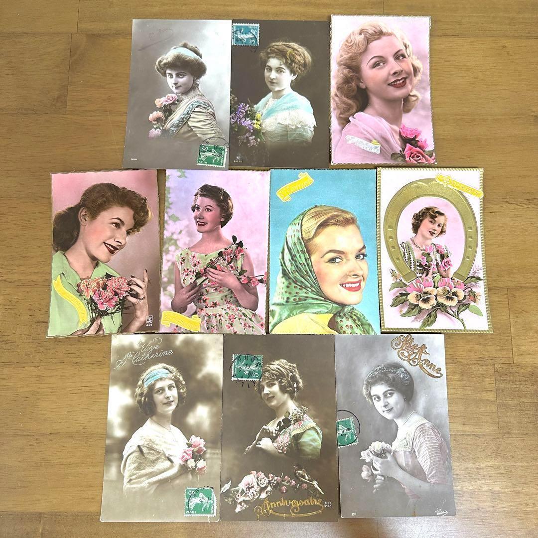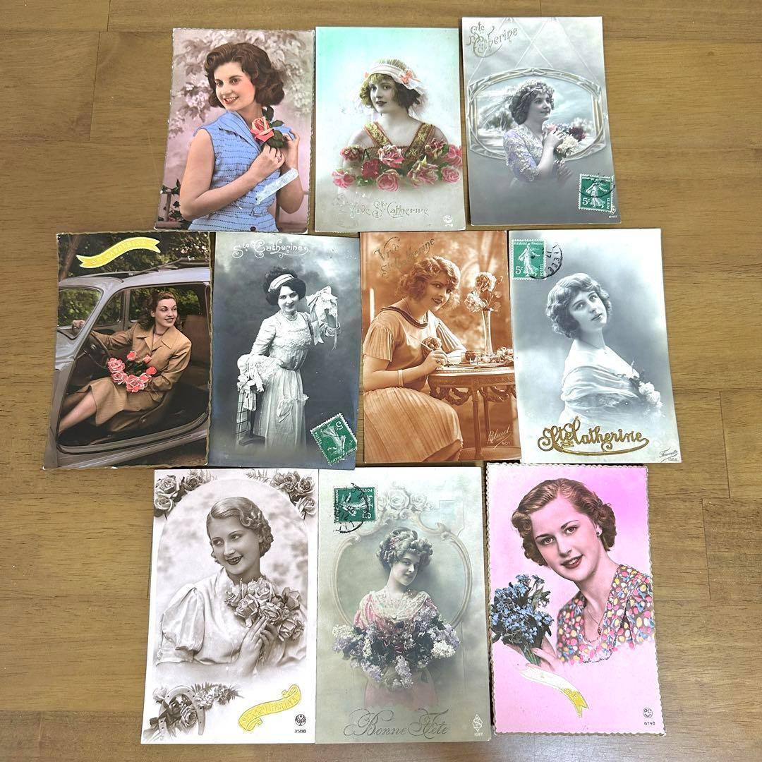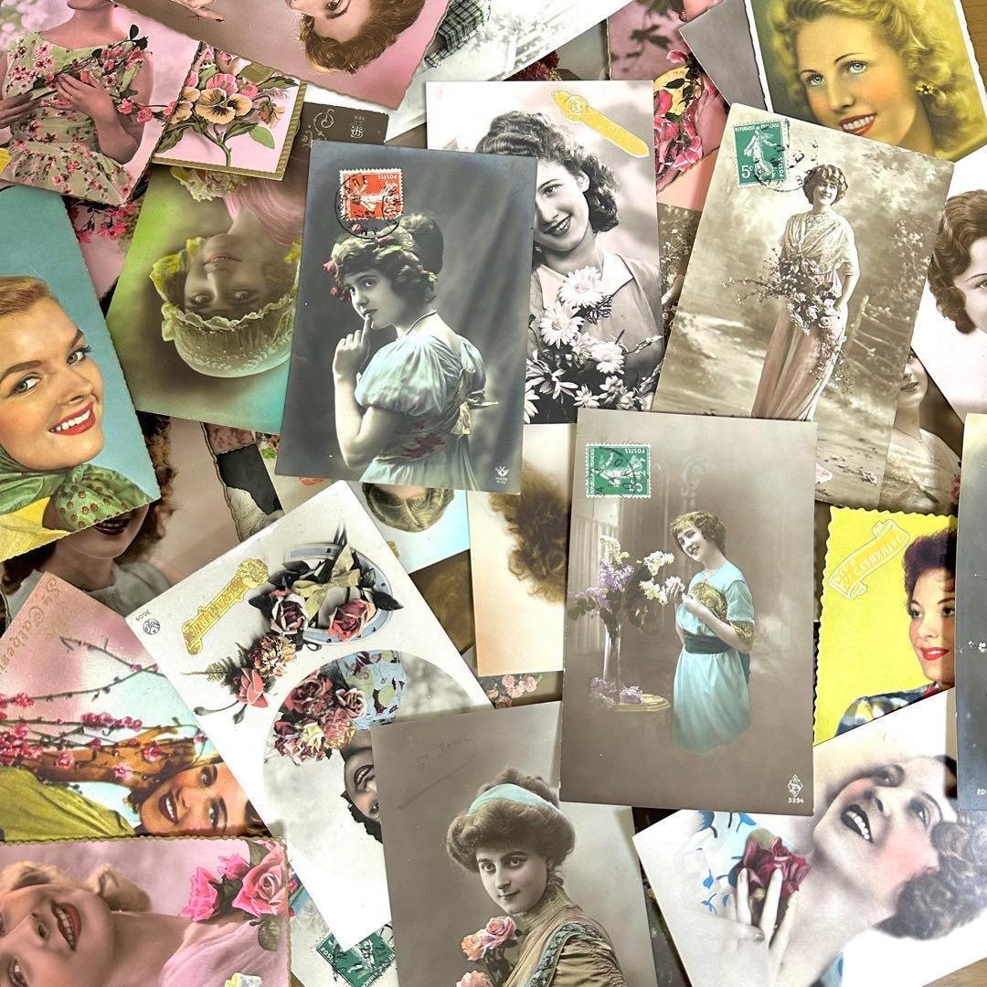 R705 50枚 フランス ヴィンテージ ポストカード ジャンクジャーナル 素材 女性 コラージュ 制作 創作 ハンドメイド 紙モノ 紙物 雑貨 卸売