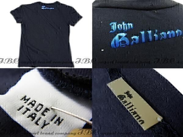 ★galliano ジョンガリアーノ★VネックプリントTシャツ紺×黒L【本物保証】イタリアンカジュアル★芸能人御用達★ハイファッション★