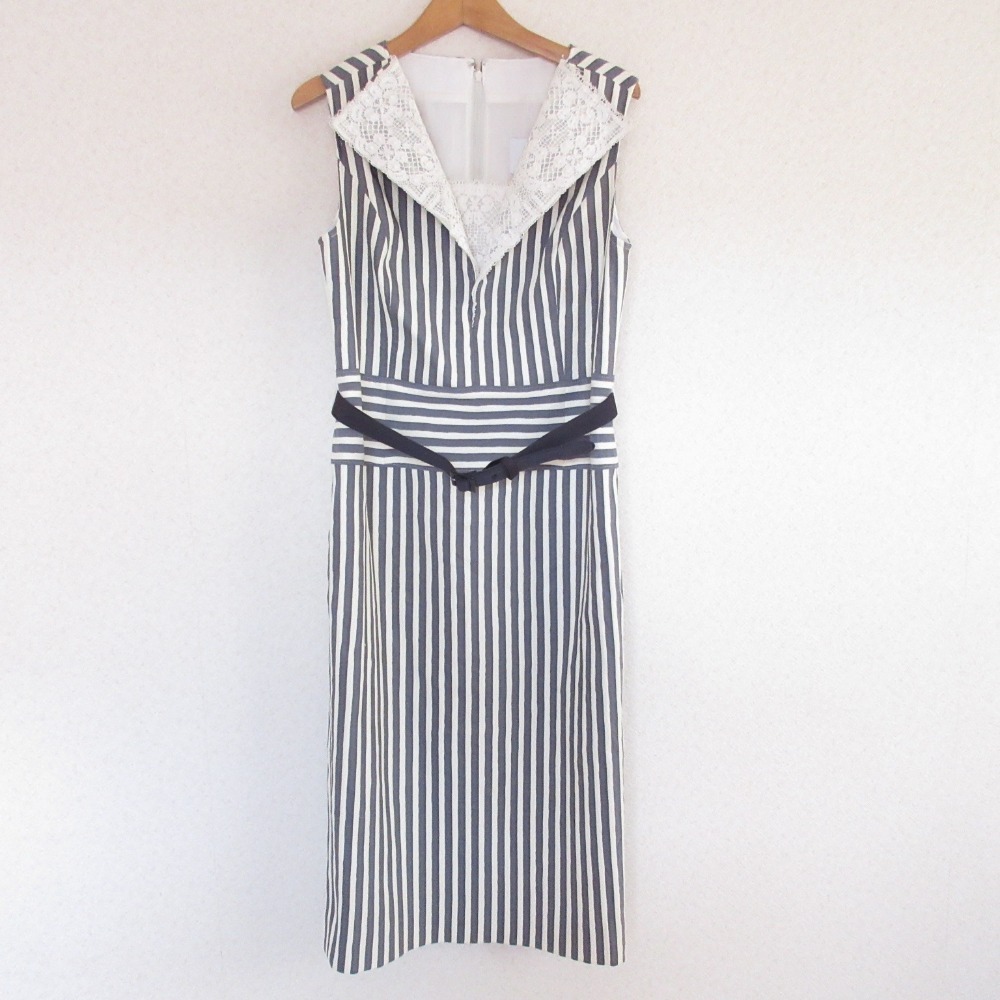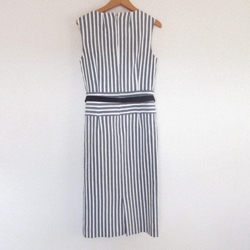 美品 TAE ASHIDA タエアシダ ストライプ柄 ノースリーブ Iライン ミディワンピース 9 グレー