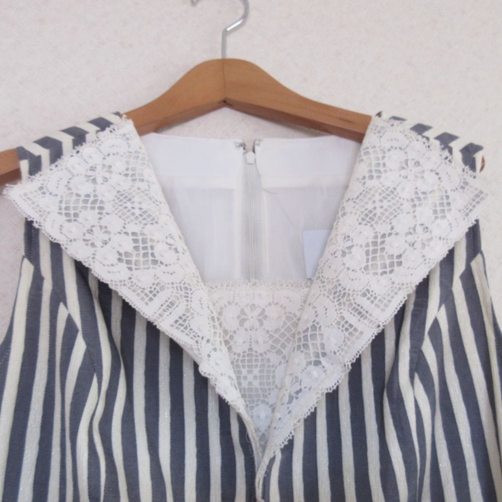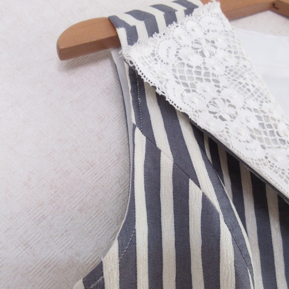 商品名:TAE ASHIDA タエアシダ ストライプ柄 ノースリーブ Iライン ミディワンピース 9 グレー
