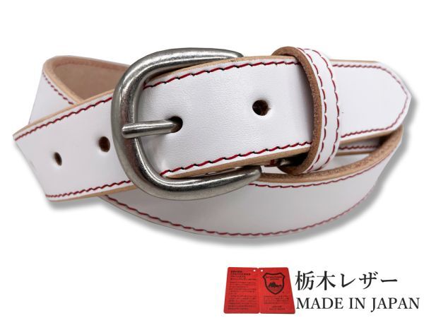 新品 栃木レザーベルト カジュアル 牛革 本革 一枚革 国産 メンズ レディース 30mm ステッチ 白色 ホワイト w061-M-WHITE-RED