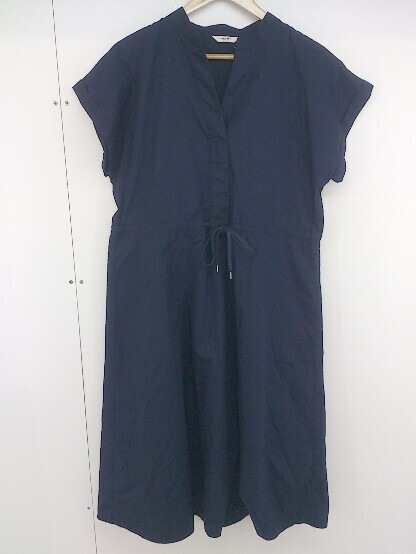 ◇ BEAMS HEART ビームス ハート フレンチスリーブ 膝下丈 シャツ ワンピース ネイビー レディース