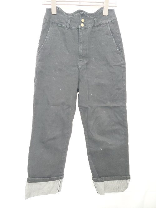 ◇ ⊂ KOBE LETTUCE ハイウエスト ストレッチ ロールアップ デニム パンツ ジーンズ サイズPL ブラック レディース E