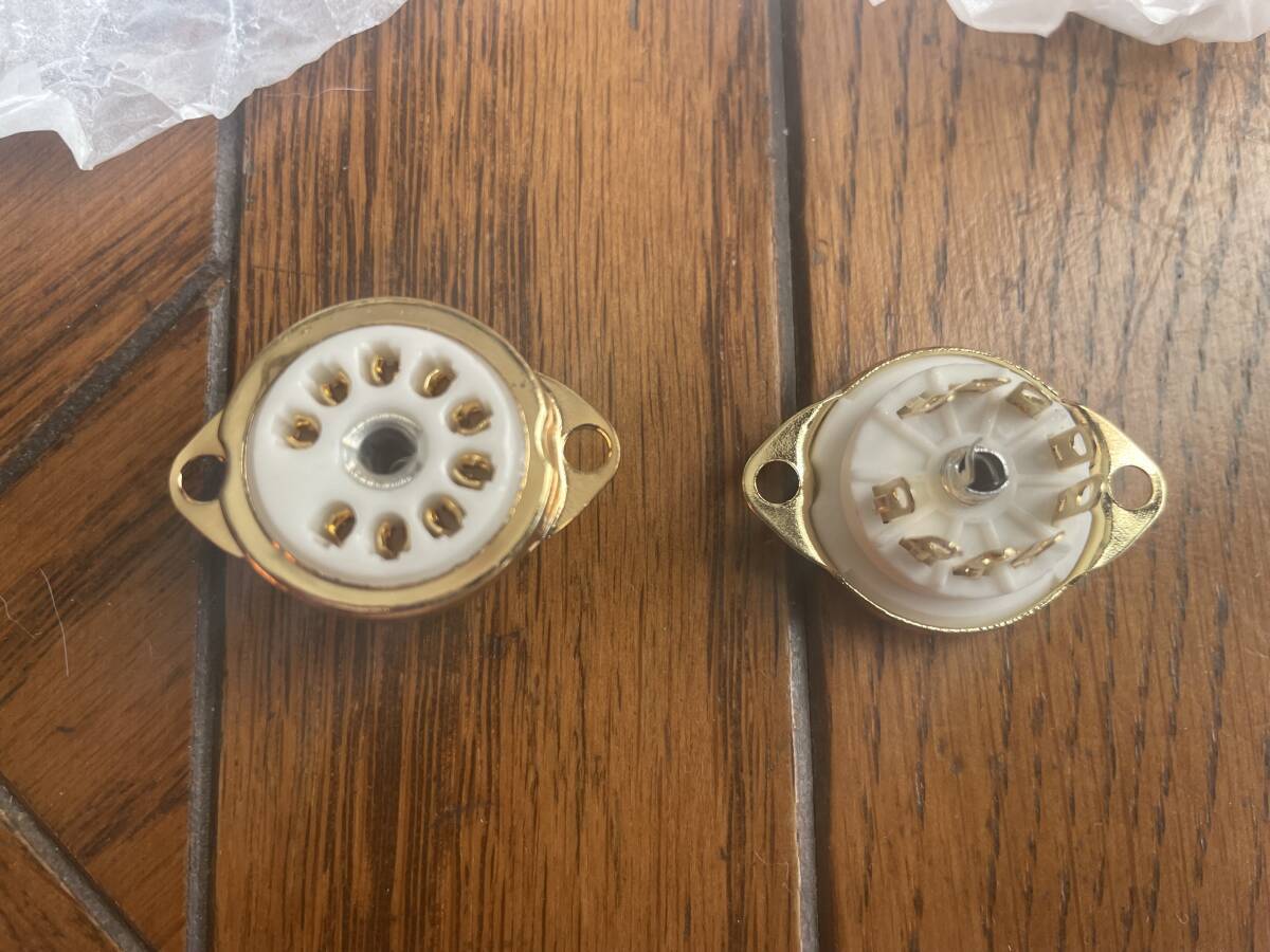 MT9ピン シャーシマウント真空管ソケット 中国製 4個です。金メッキ タイト製の新品ですのでとても綺麗です。
