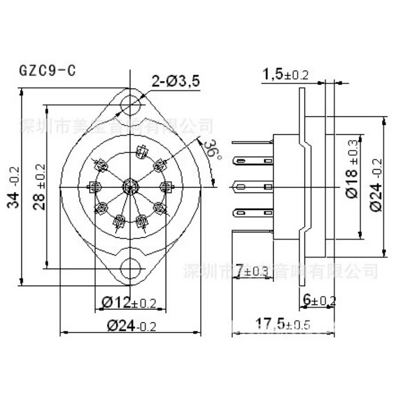 新品 真空管ソケット MT9ピン 金メッキ タイト セラミック シャーシマウント上取付タイプ 中国製 GZC9-C-G 4個 \1,000即決