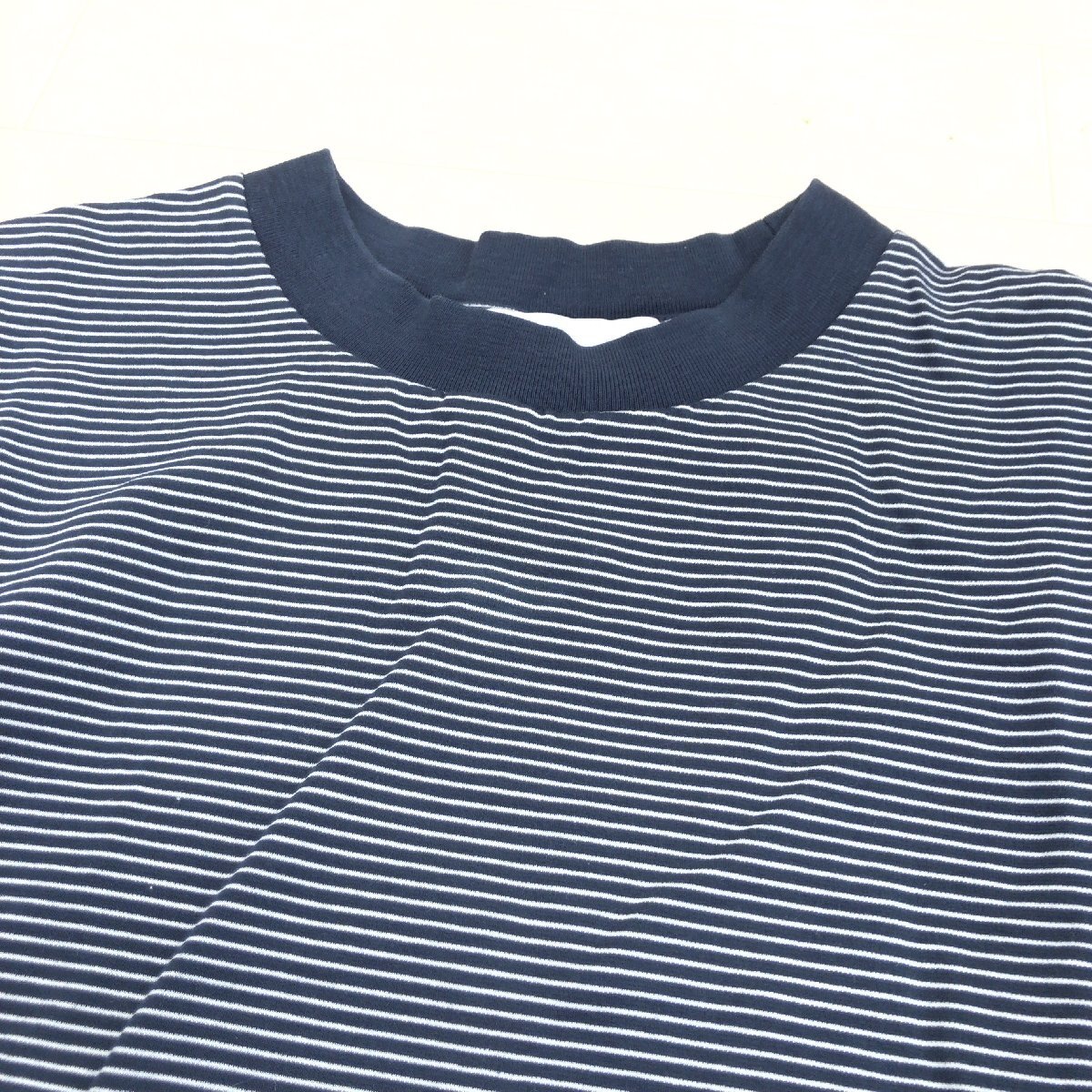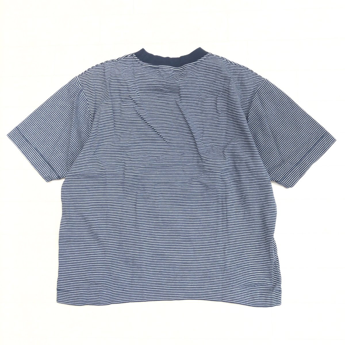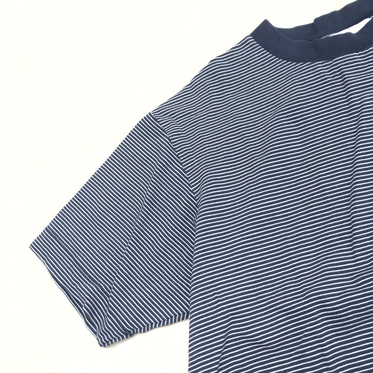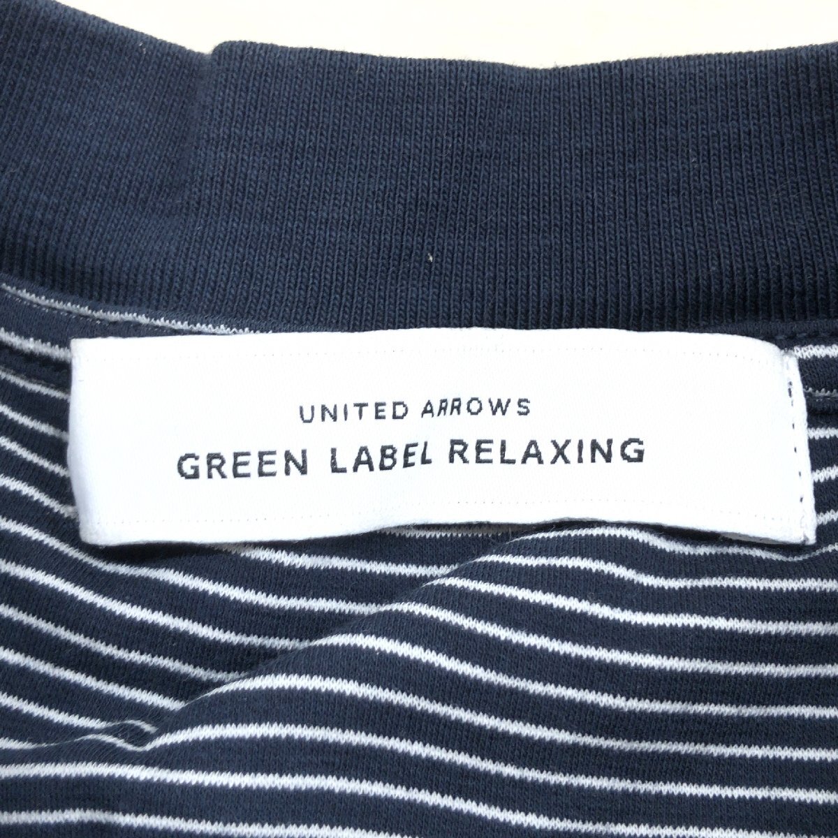 美品 UNITED ARROWS GLR ユナイテッドアローズ ポンチ ボーダー ワイドカラー Tシャツ M ネイビー ゆったり カットソー 半袖 レディース
