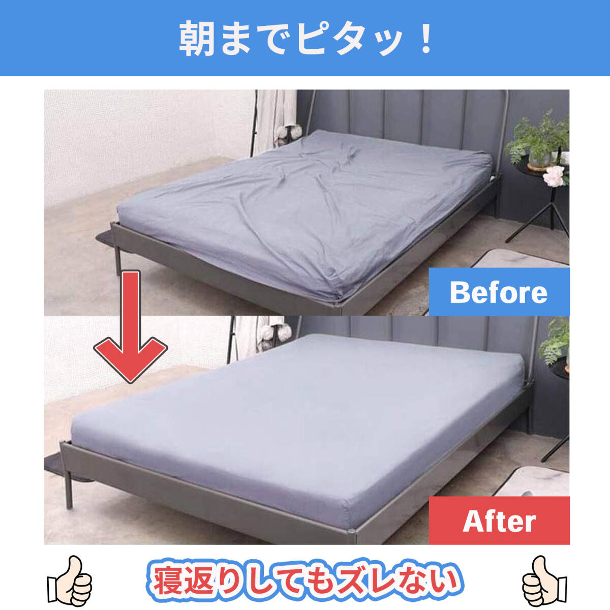 • 強力クリップでしっかり固定でき、シーツのずれを防いで快適な睡眠をサポートします。クリップはマットレス下に隠れるため、見た目もすっきり。使い始めは硬めに感じる場合がありますが、数回の使用で馴染んできます。※本製品に取扱説明書は付属しておりません。取り付け方法は商品画像をご参照ください。
