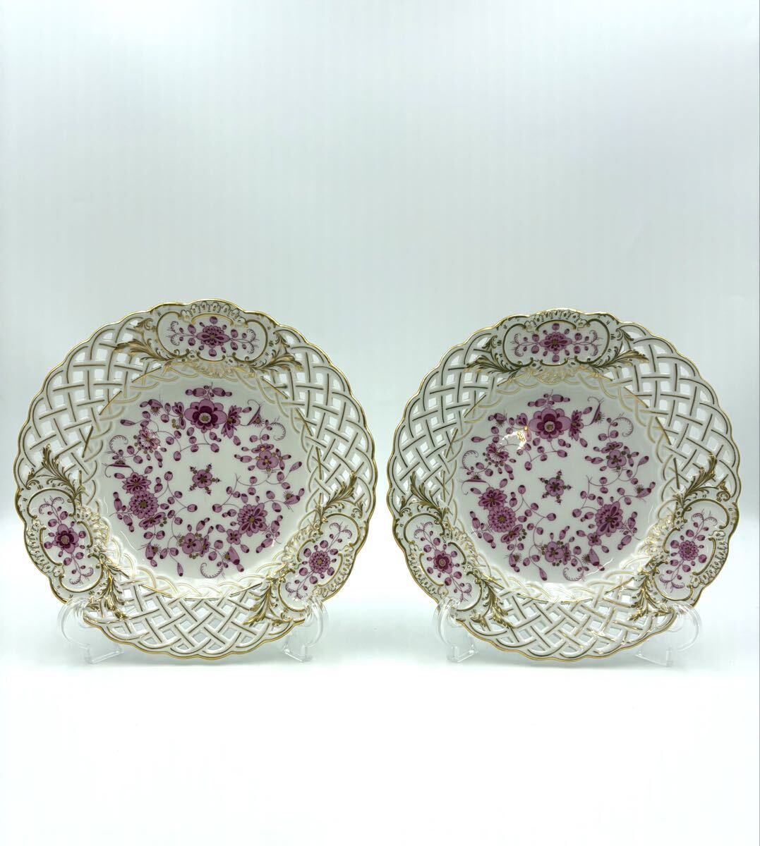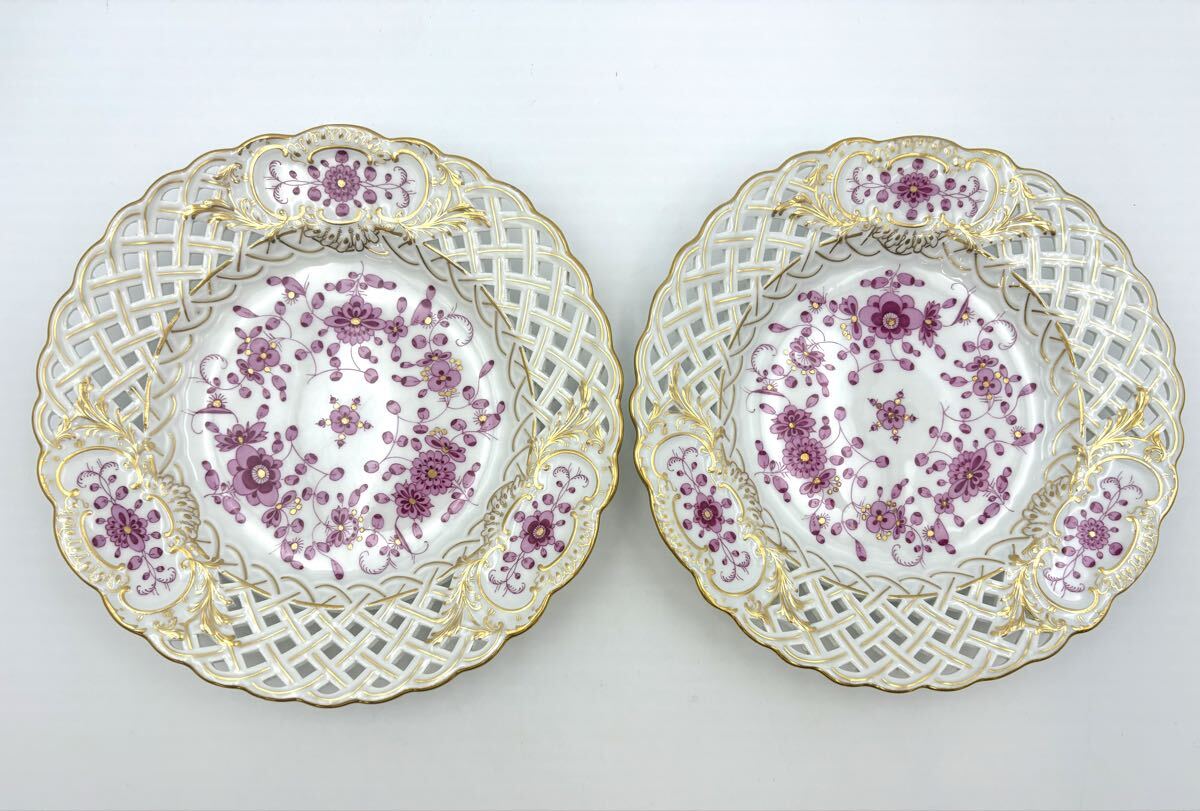 商品名 : MEISSEN マイセン インドの華 リッチピンク 透かしプレート 2枚セット ペア
