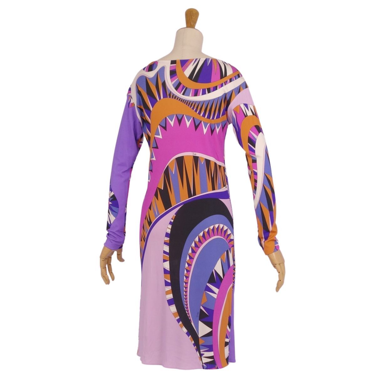 | 美品 エミリオプッチ EMILIO PUCCI ワンピース ドレス ロングスリーブ 長袖 総柄 シルクジャージー トップス I40(M) |