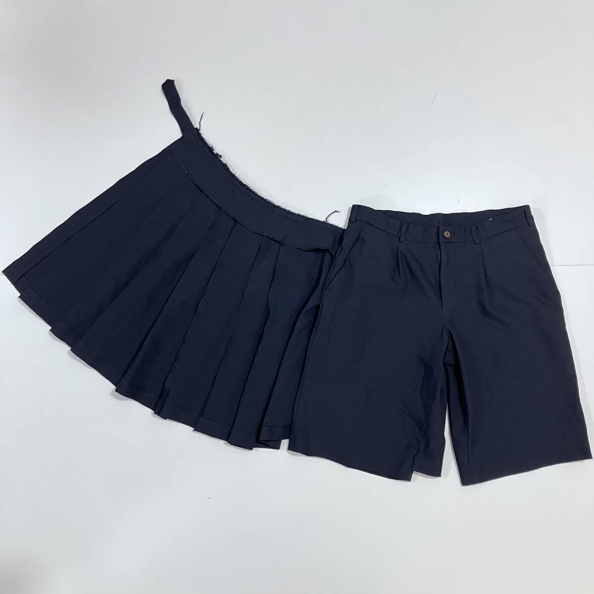 AD2013 COMME des GARCONS プリーツ 巻きスカート ドッキング ショートパンツ ネイビー