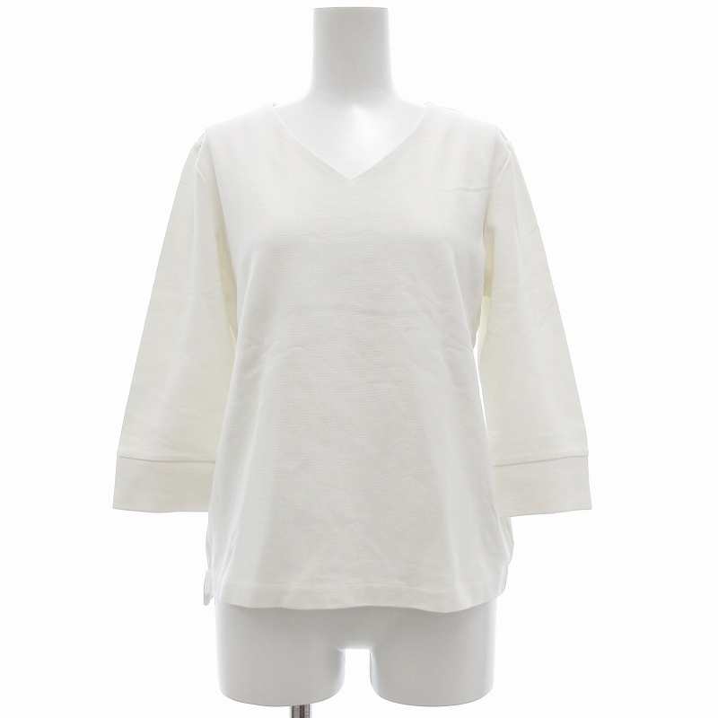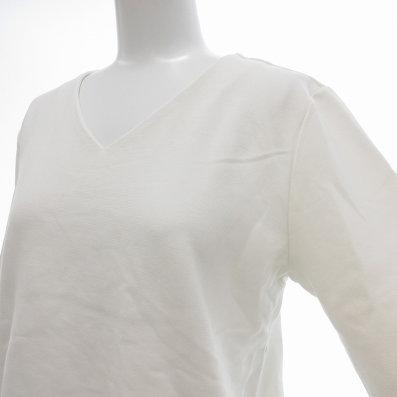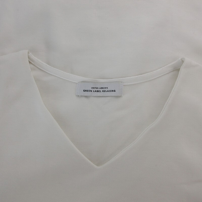 グリーンレーベルリラクシング ユナイテッドアローズ green label relaxing リップル Vネック 7分袖 カットソー 白 /UO レディース