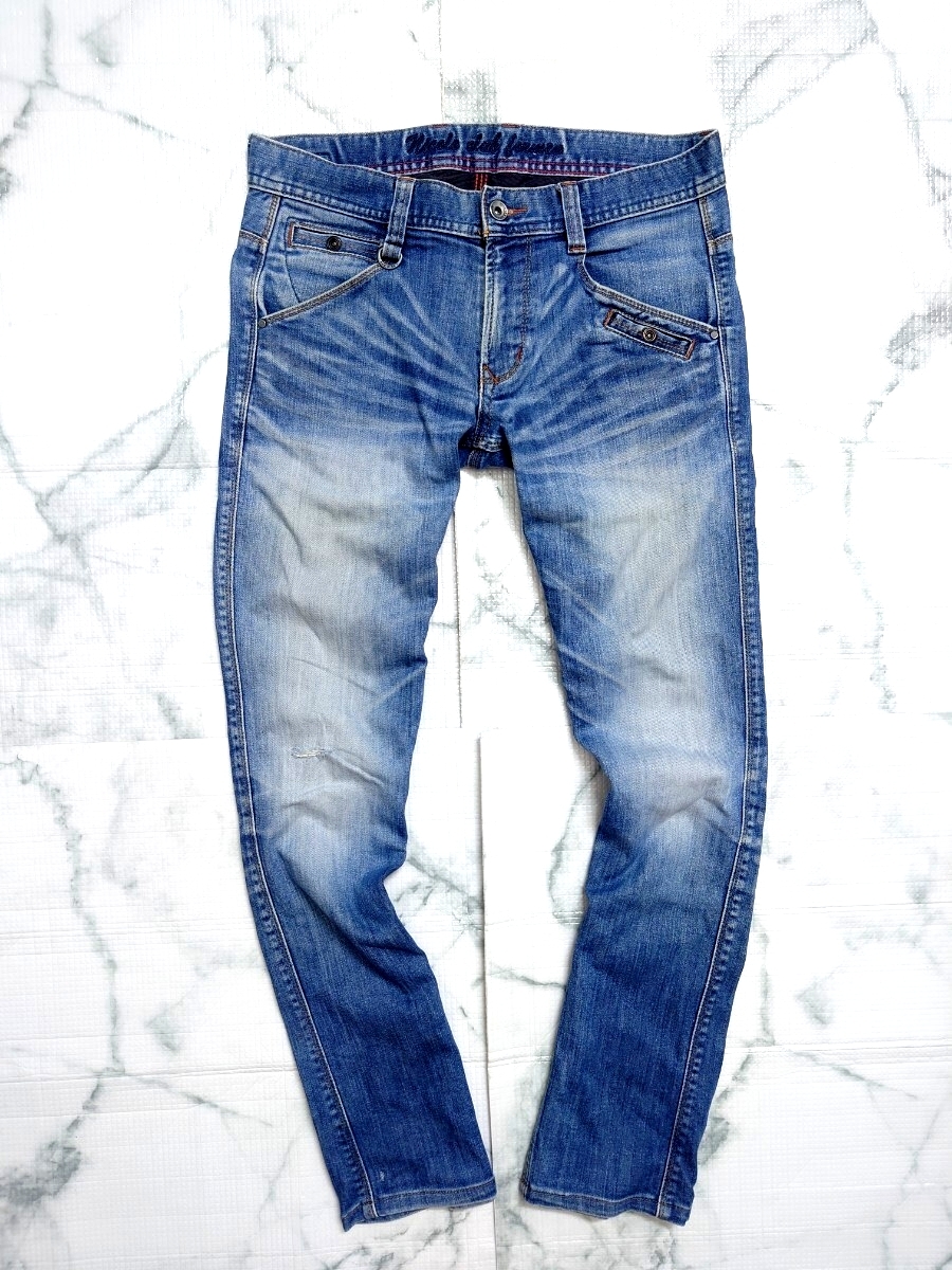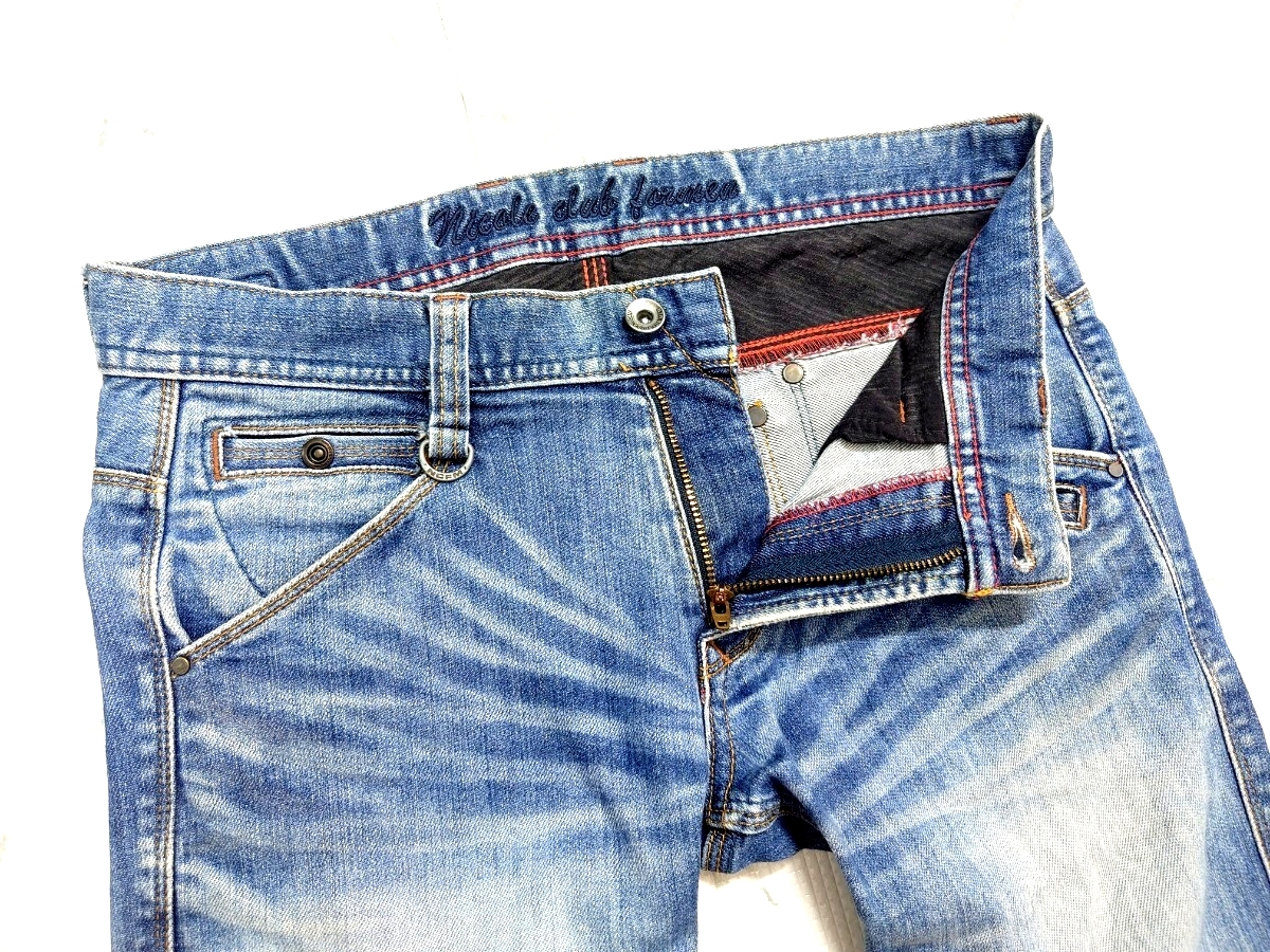 ☆NICOLE CLUB FOR MEN(ニコルクラブフォーメン)デニムパンツです!! ☆表記サイズは44でウエスト82cm、股上(前部分)23cm、股下75cm、腿幅(股下0cm地点)25cm、裾幅18cm(素人採寸ですので参考程度でおねがいします) |