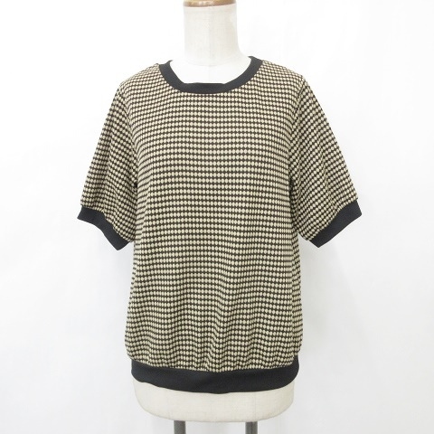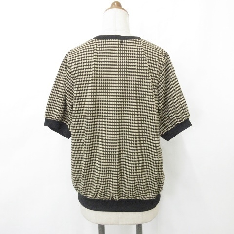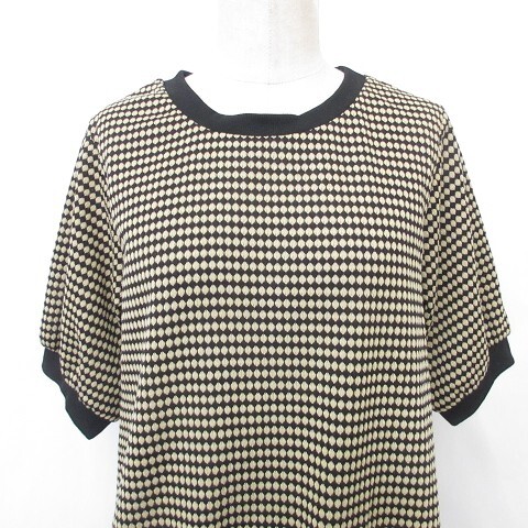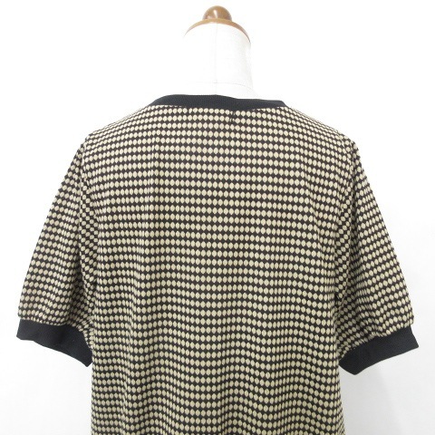 未使用品 クラシカルエルフ Classical Elf カットソー 半袖 丸首 ジャガード ハニカム柄 黒 ブラック ベージュ XL レディース