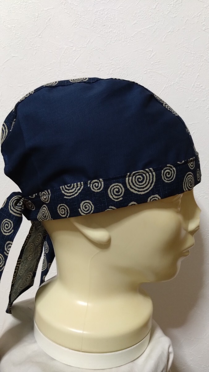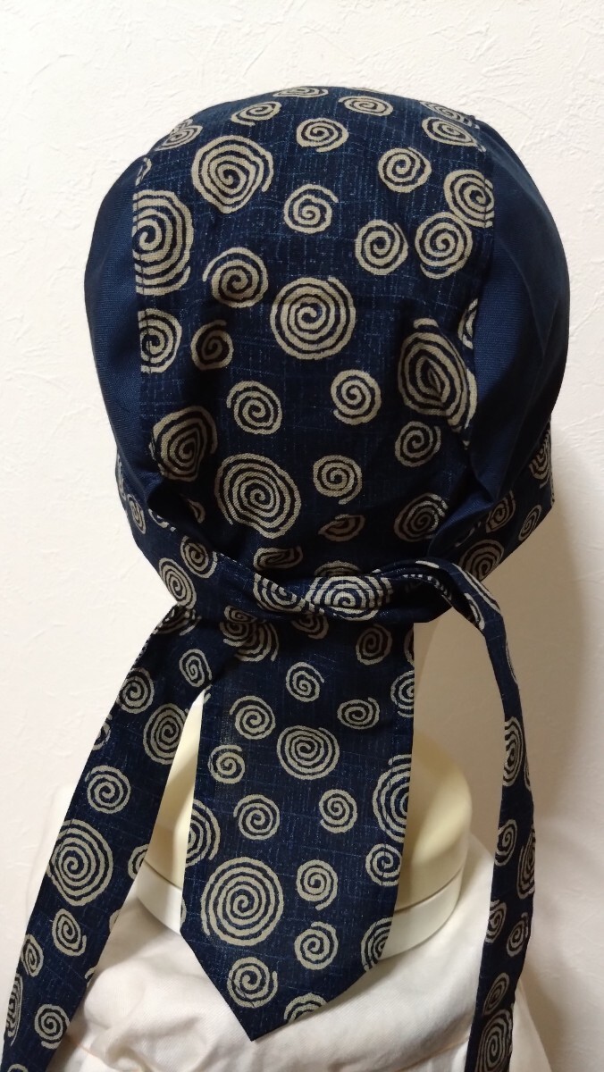 ★バンダナキャップ★ハンドメイド 和柄 うずまき×無地 渦巻 紺