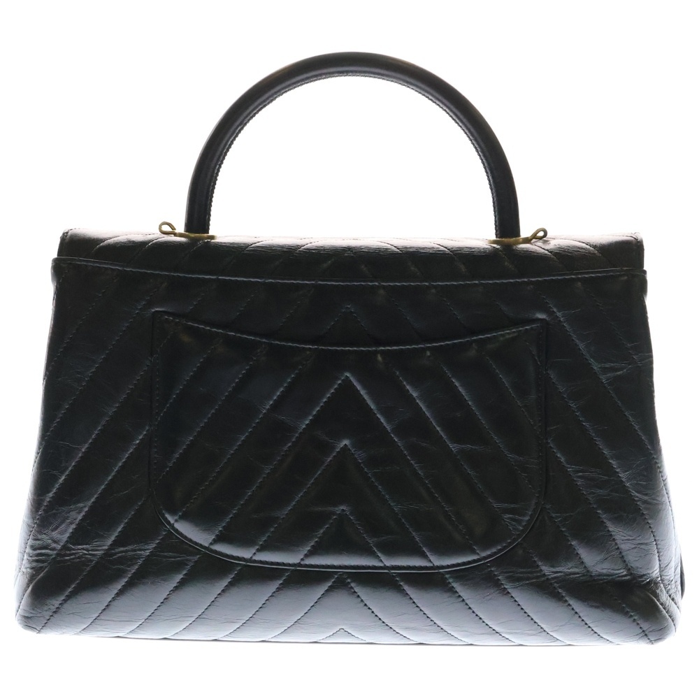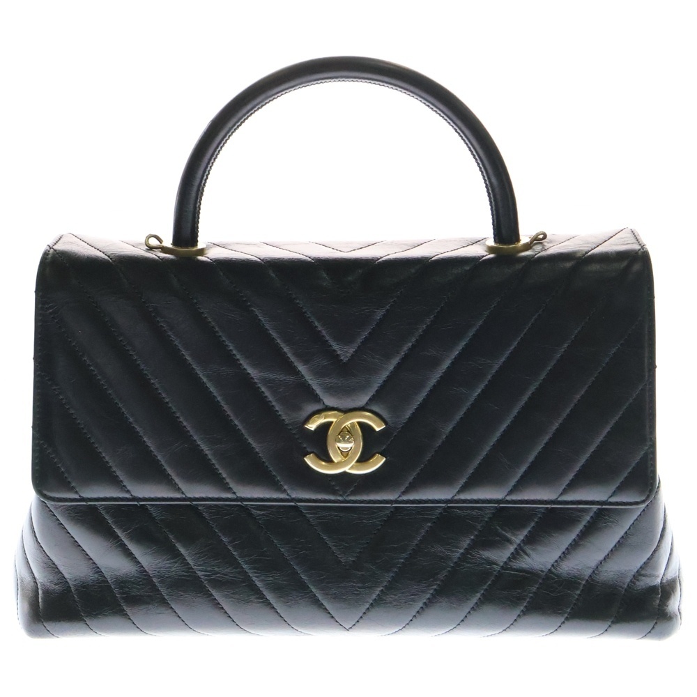 CHANEL シャネル Vステッチ シェブロン トップハンドル チェーン ショルダーバッグ ブラック ラムスキン ゴールド金具 A92991