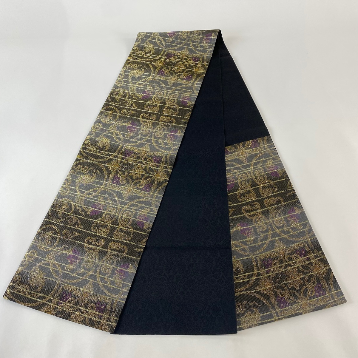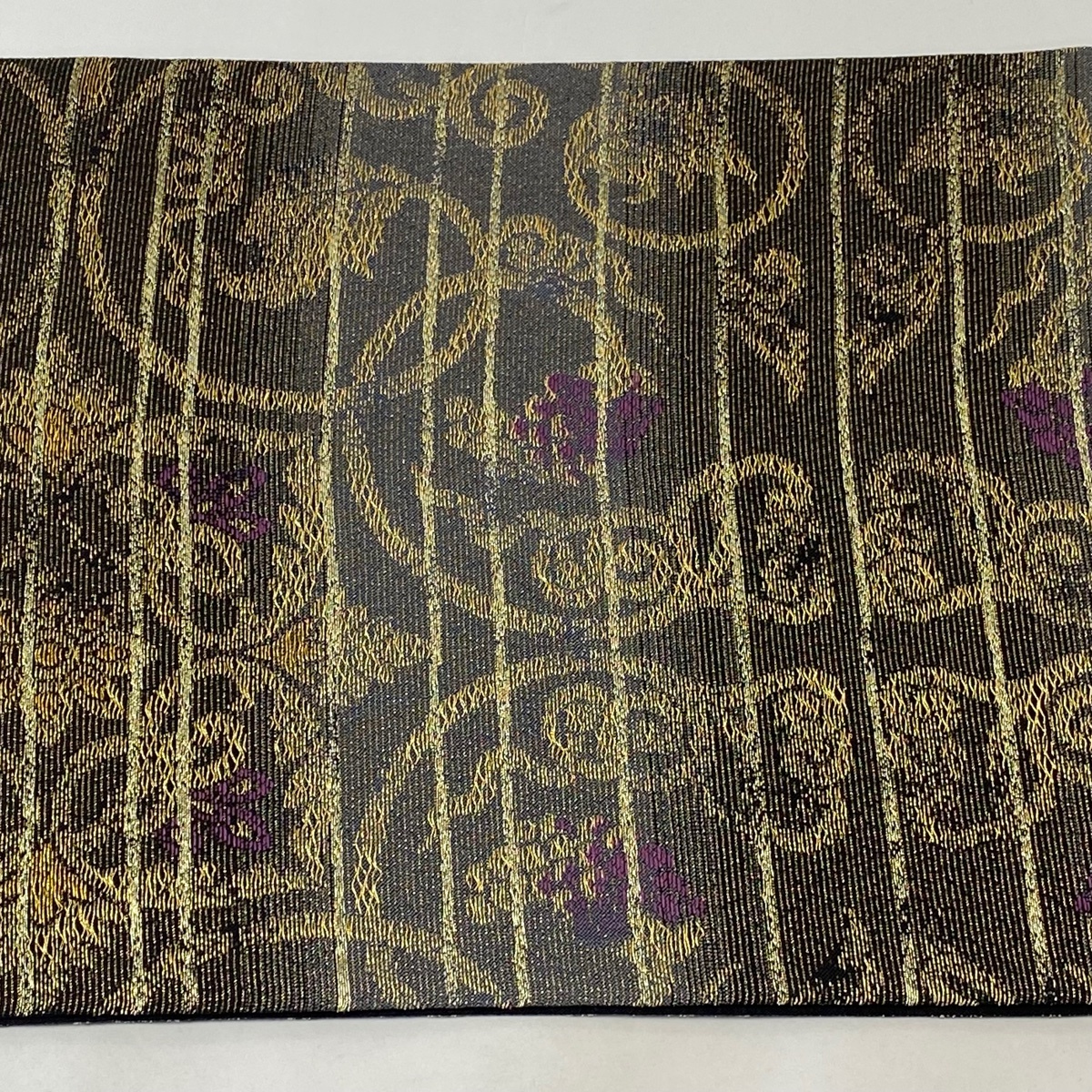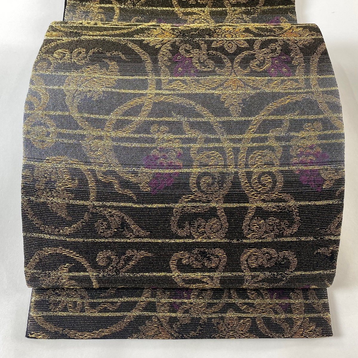 袋帯 美品 名品 華文 金糸 灰色 六通 正絹 【中古】 |