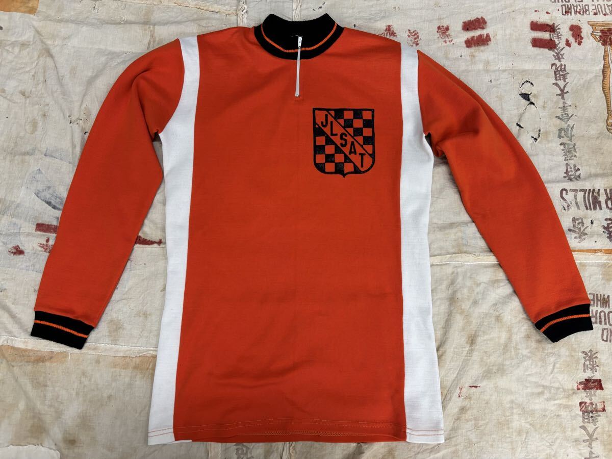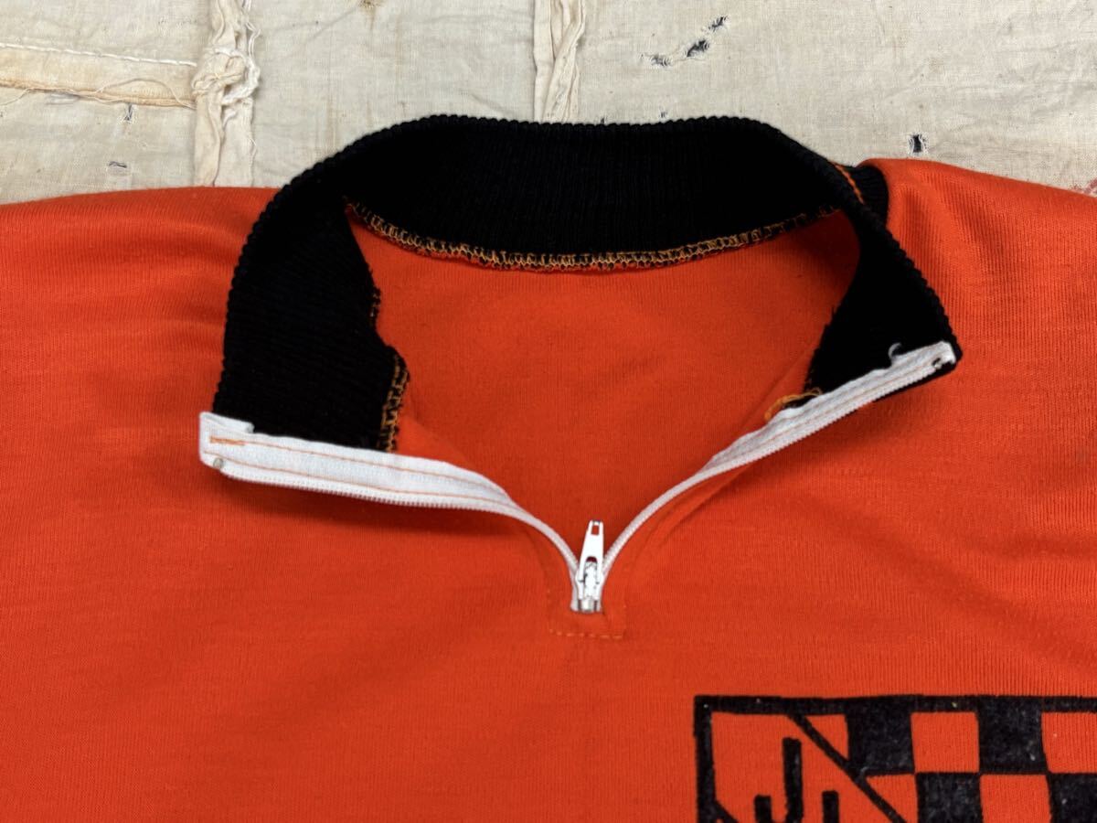 イギリスで購入したビンテージのサイクリングジャージです。発色の良いオレンジボディにされたフロッキープリント
