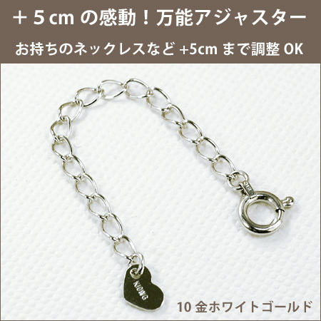 こちらのネックレス用アジャスターをお持ちのネックレスなどに合わせれば、「+5cm」まで長く使用出来る万能チェーンです。