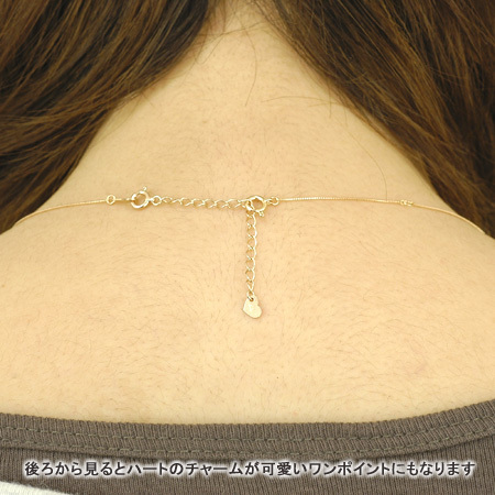 チェーンのエンドパーツが「ハート」なのもポイント!首の後ろに垂れ下がり、とてもエレガントな印象に。