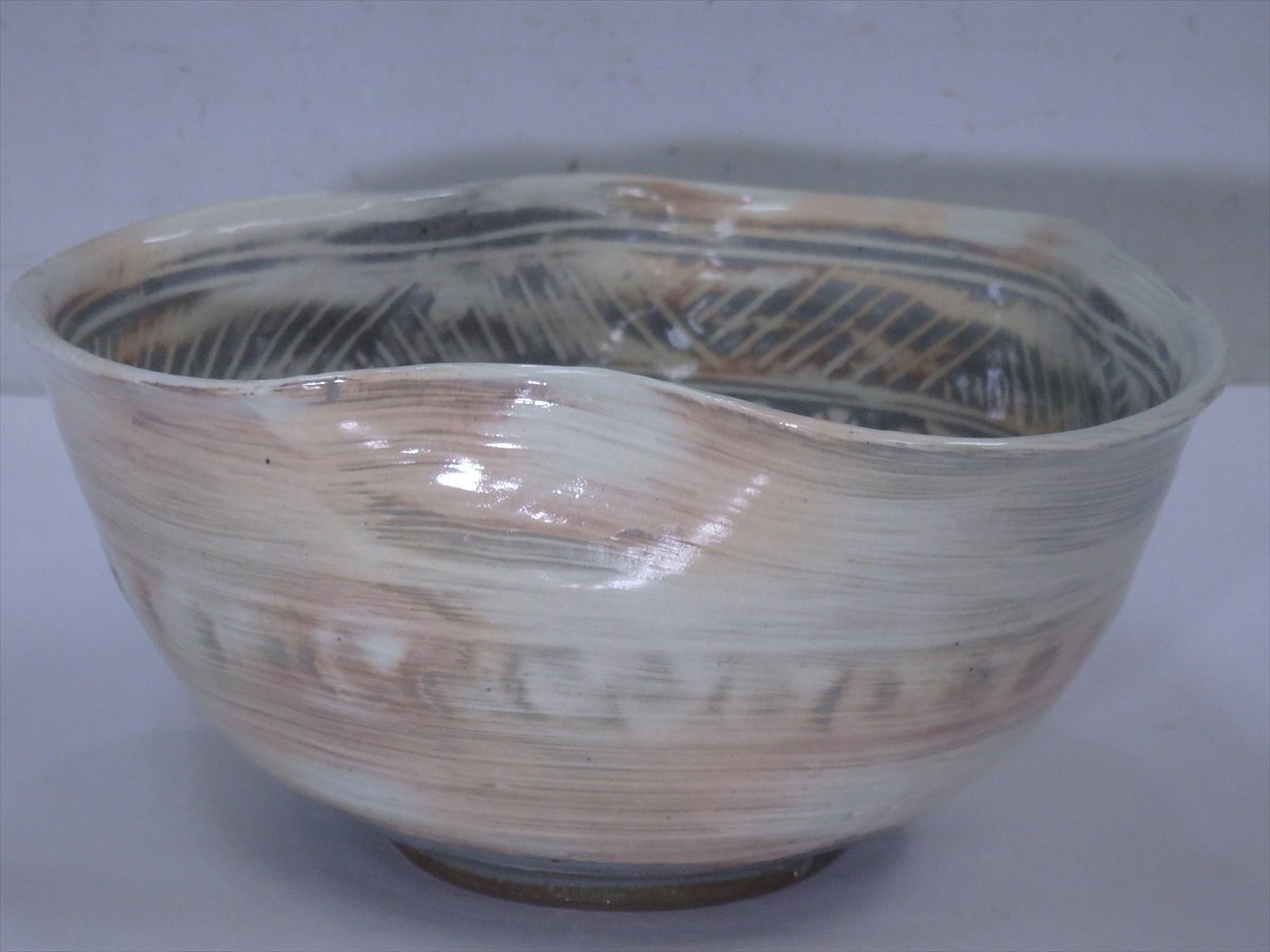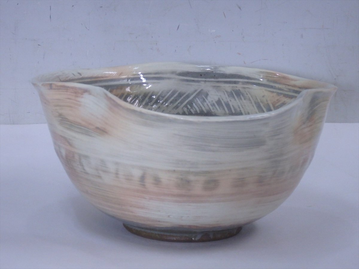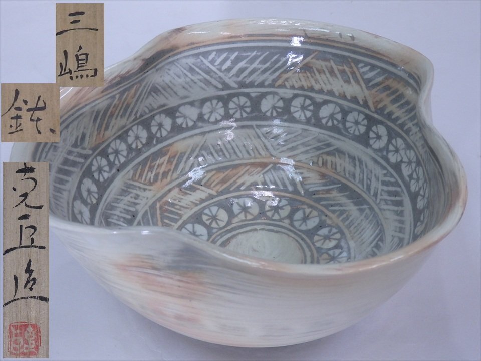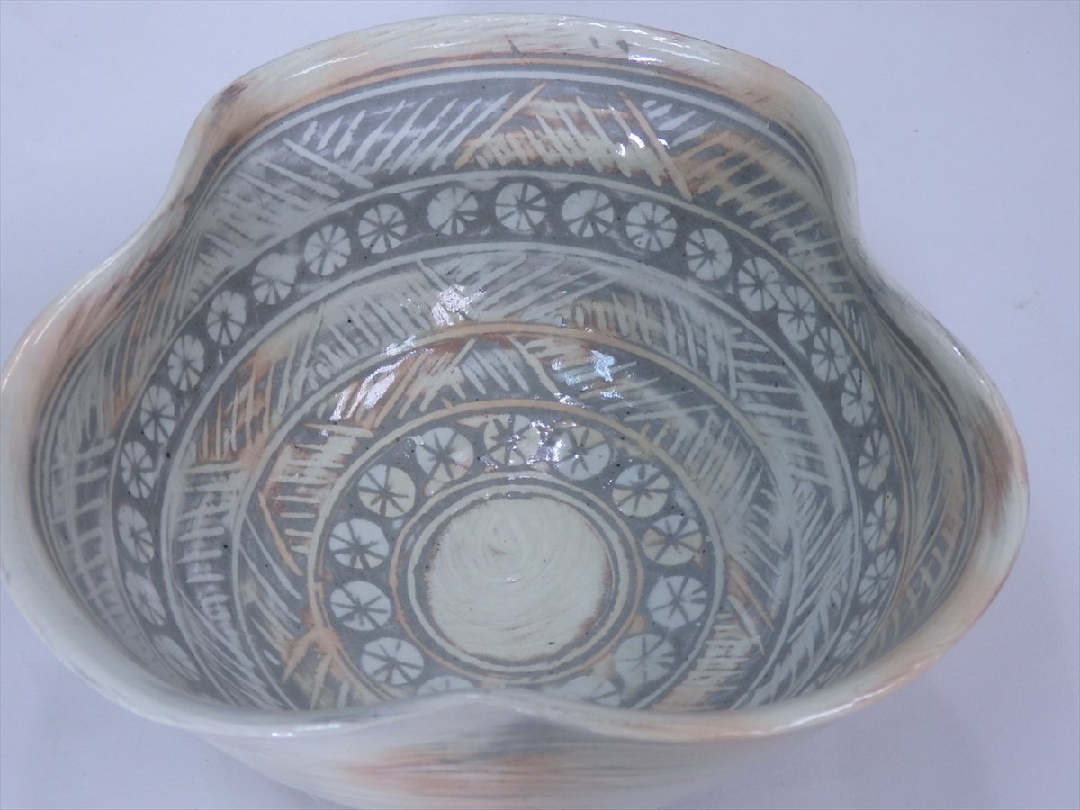 ★状態良好!富山 陶房 雲 奥川克臣【三嶋 変形鉢 共箱】和モダン!直径約19×高さ9.7cm 茶道具 菓子器 茶器 和食器
