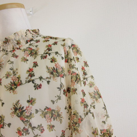 イング INGNI プリーツワンピース 半袖 ひざ丈 花柄 ベージュ M *A553 レディース
