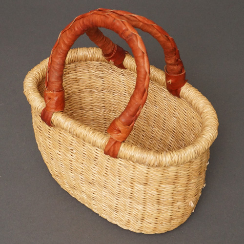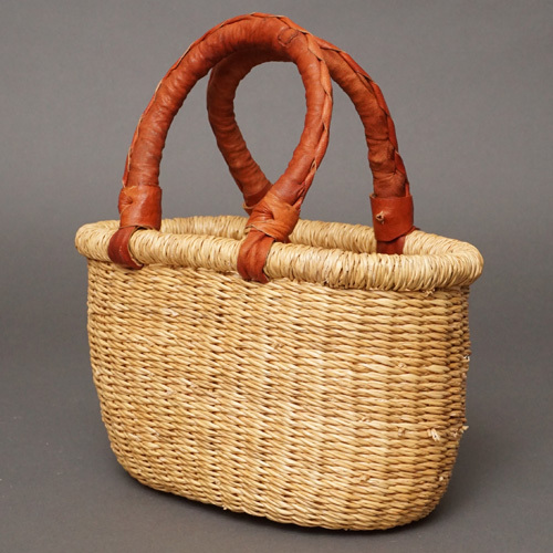 アフリカ ブルキナファソ 楕円  バスケット ブラウン 無地 Sサイズ  No.6 かご かごバッグ ボルガバスケット