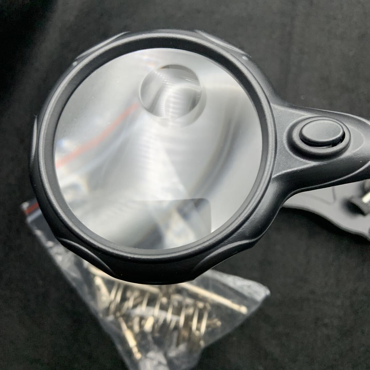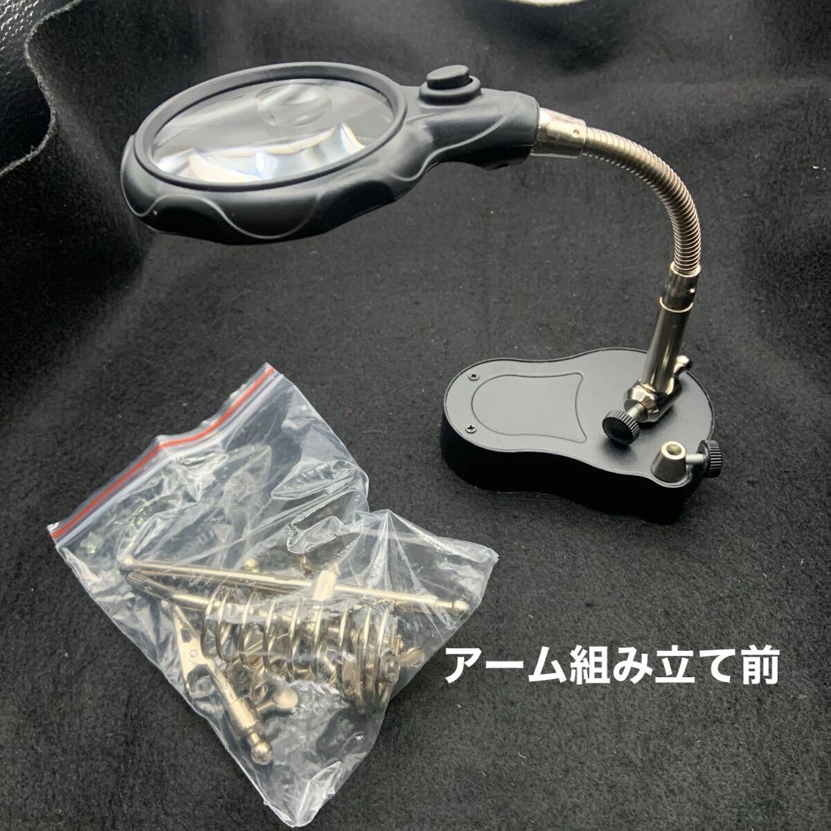 レンズ、クリップ、LED、はんだスタンドで構成された作業用ツール