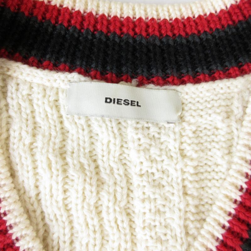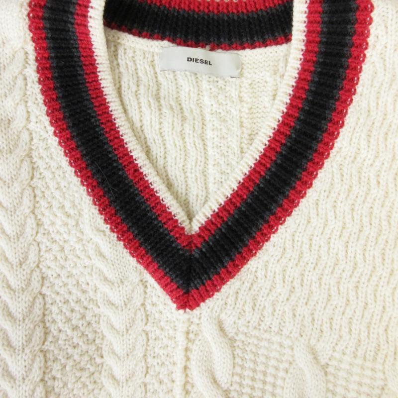 ディーゼル DIESEL ケーブルニット セーター ライン ウール 長袖 S 白 ホワイト 0725 レディース