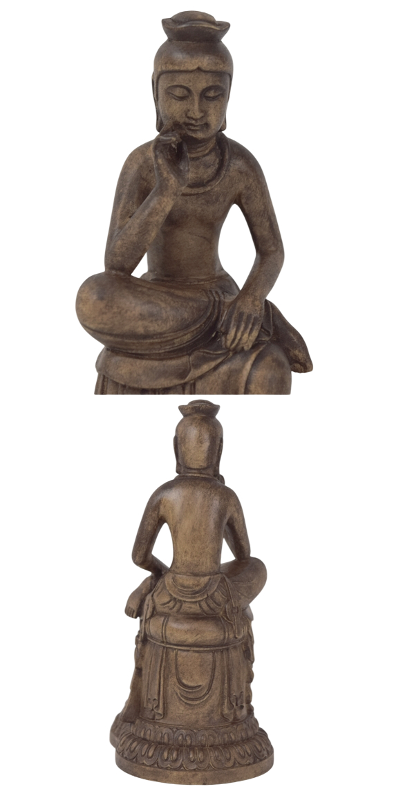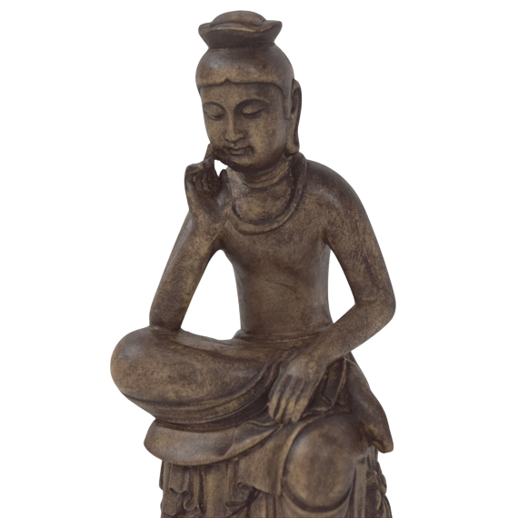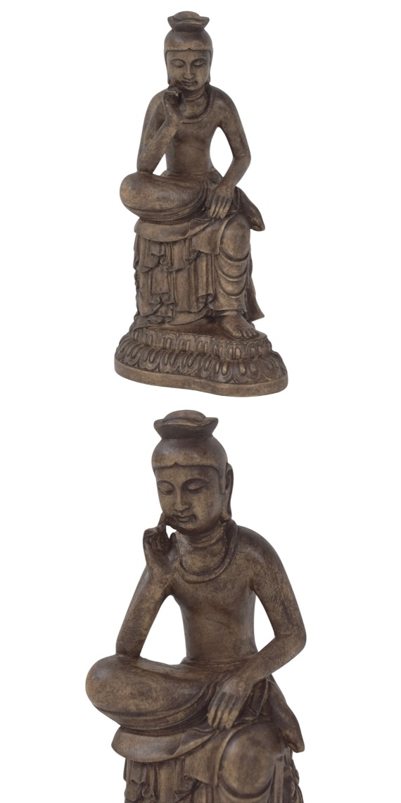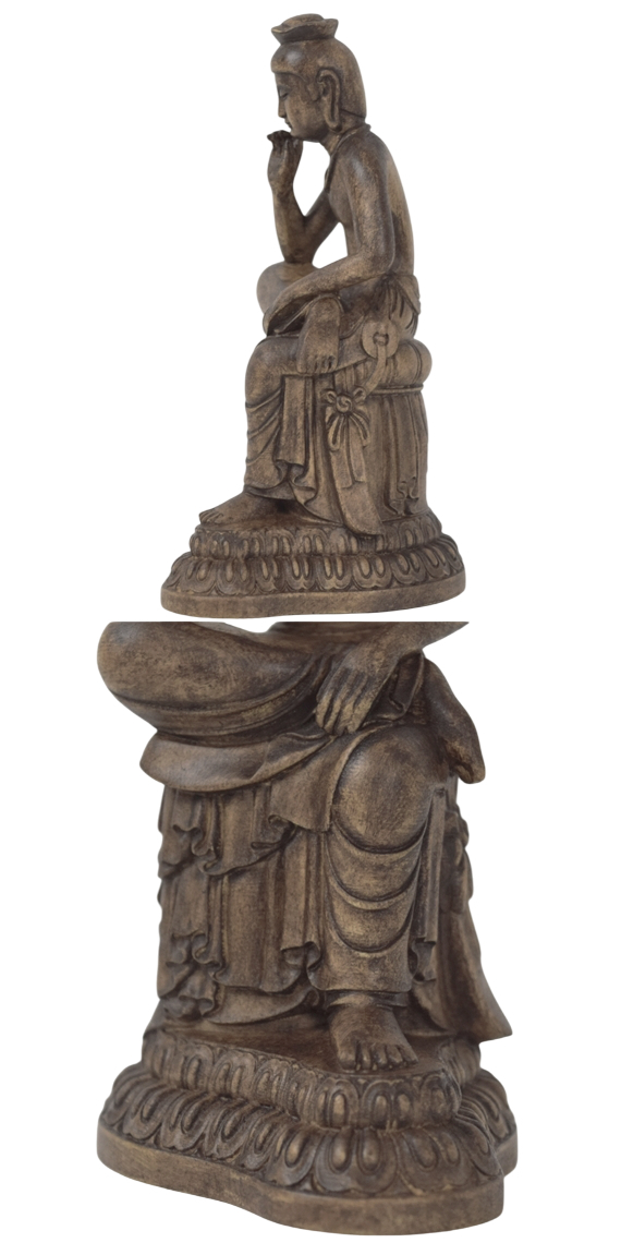 弥勒菩薩は釈迦が亡くなってから56億年7千万年後に仏となりこの世で救われなかった人々を慈悲の心で救い出すといわれています。56億年後は地球はもちろん、太陽系の寿命とほぼ一致しており、何らかの説得力があります。よくあるこちらの仏像のようなポーズは人々将来どうやって救えばいいか考えてるところだと言われています。