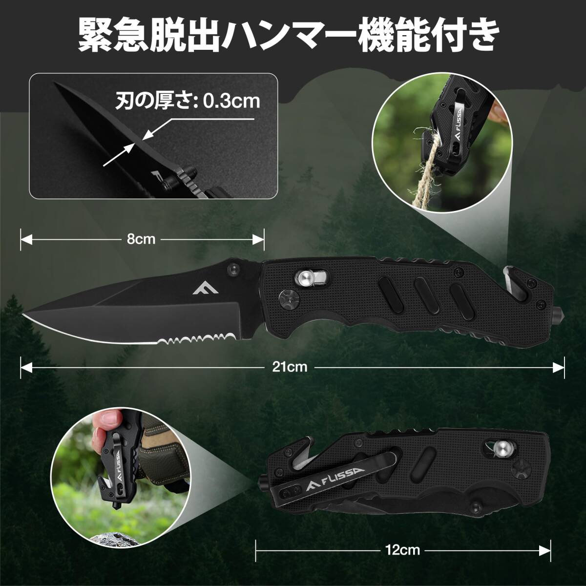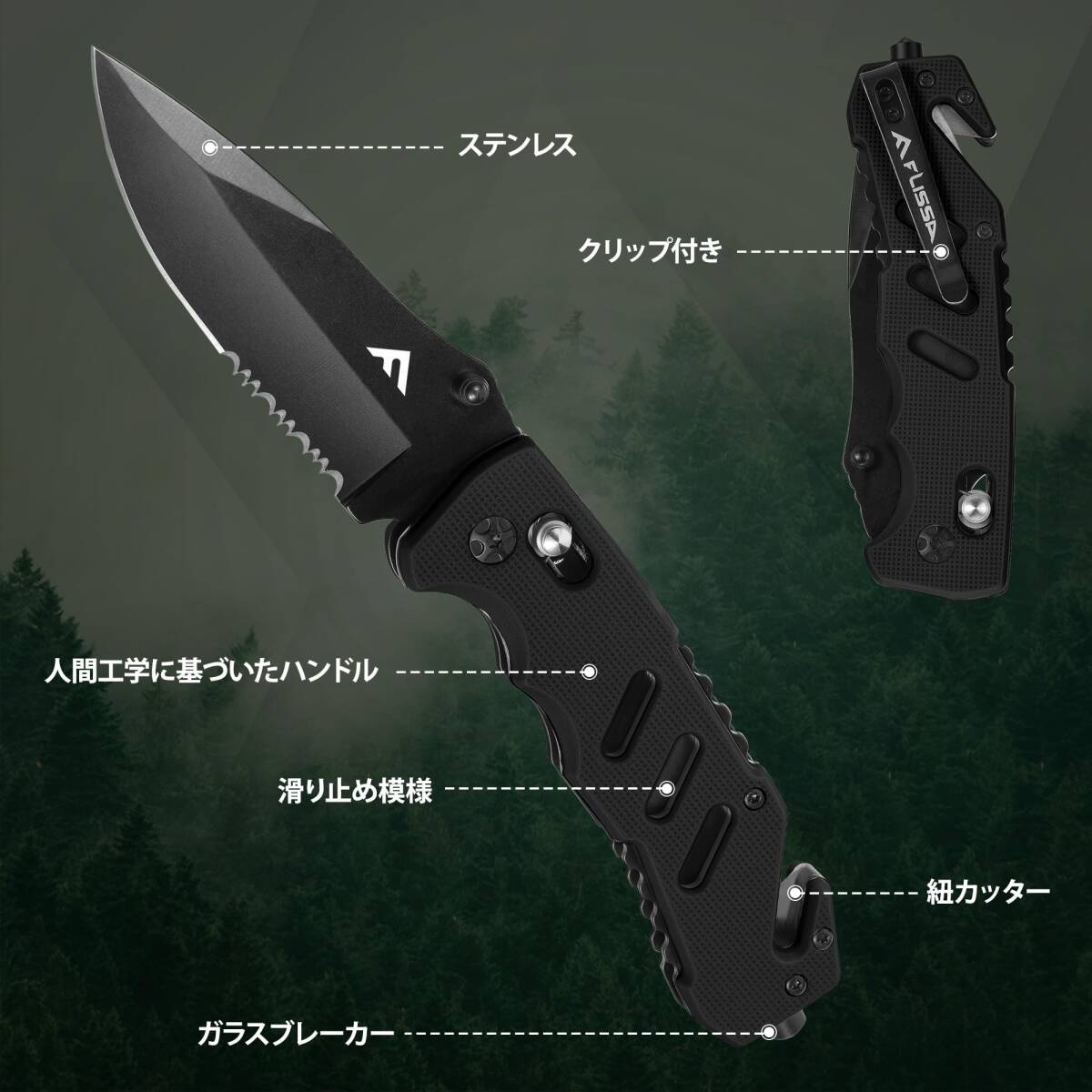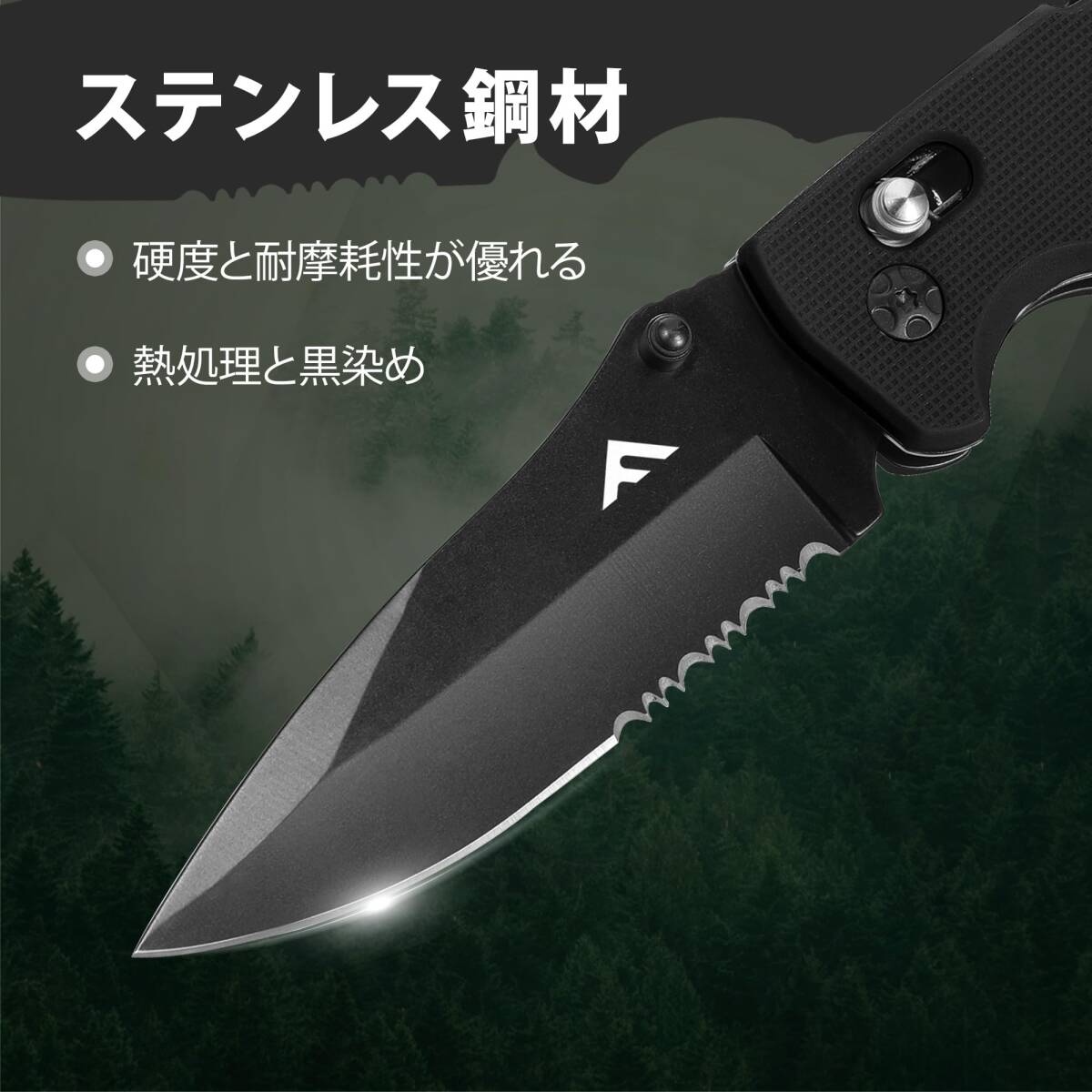 FLISSA アウトドアナイフ 折り畳みナイフ 折りたたみナイフ フォールディングナイフ 多機能ナイフ ステンレス製