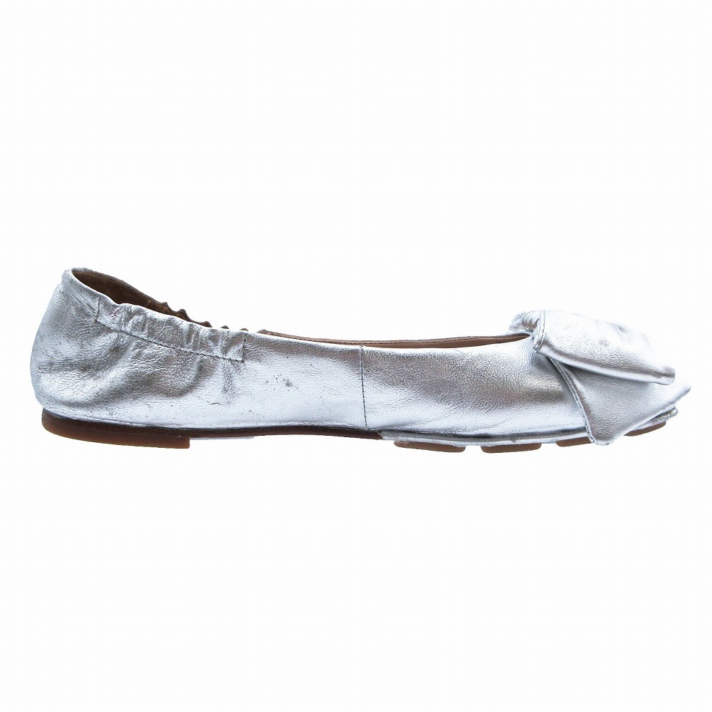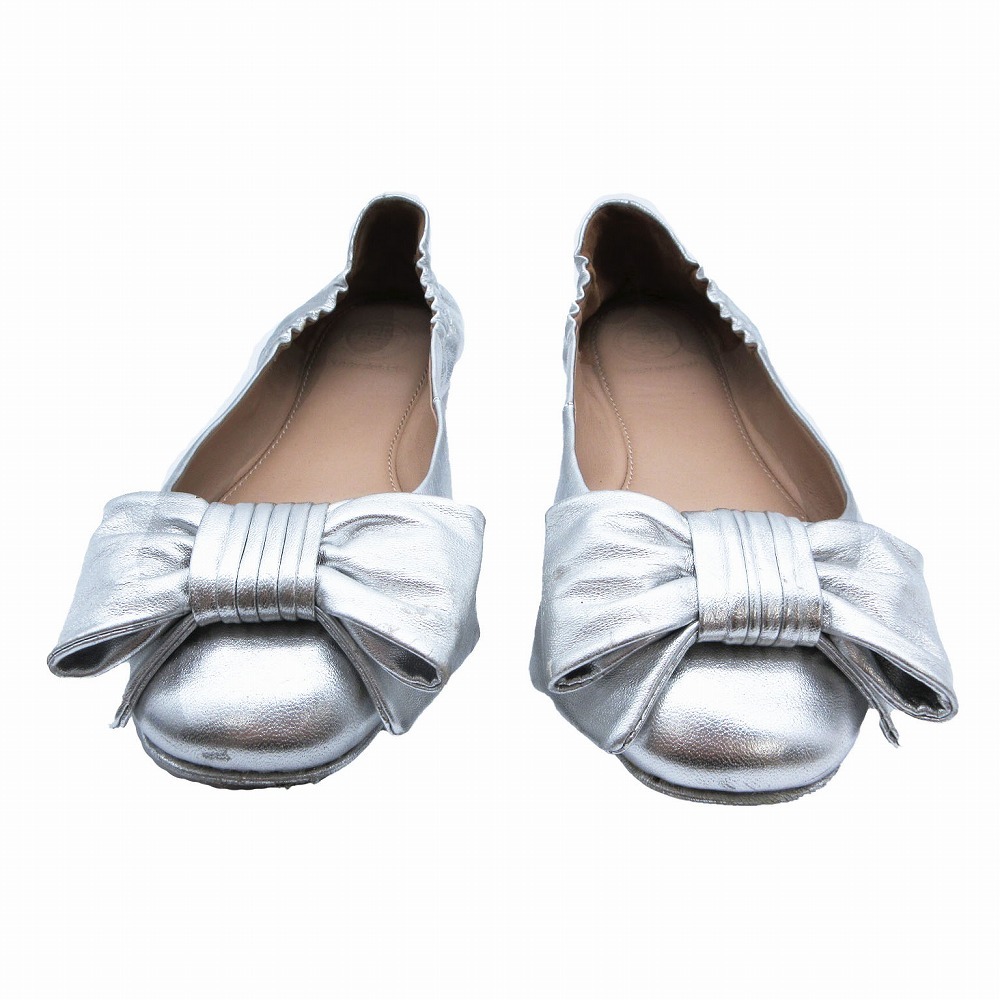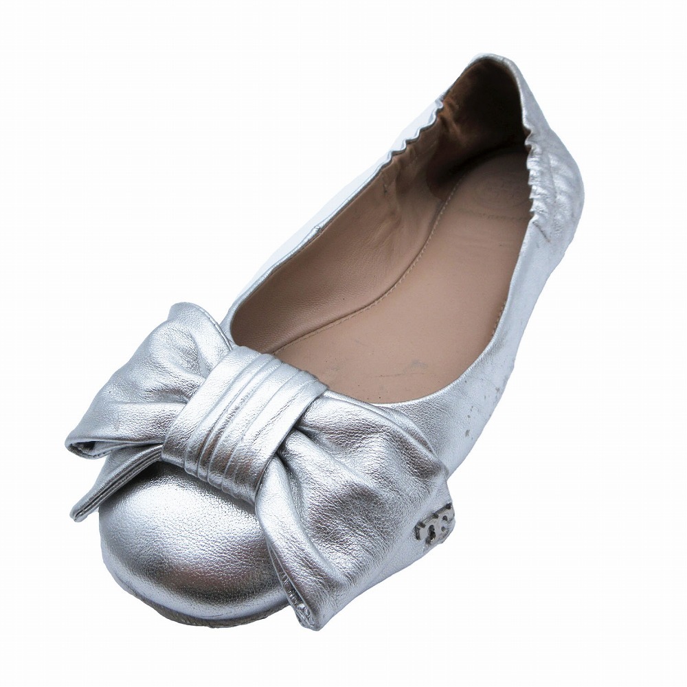 | 【TORY BURCH トリーバーチ リボン レザー フラットシューズ バレエシューズ シルバー サイズ23.5cm レディース】 | |