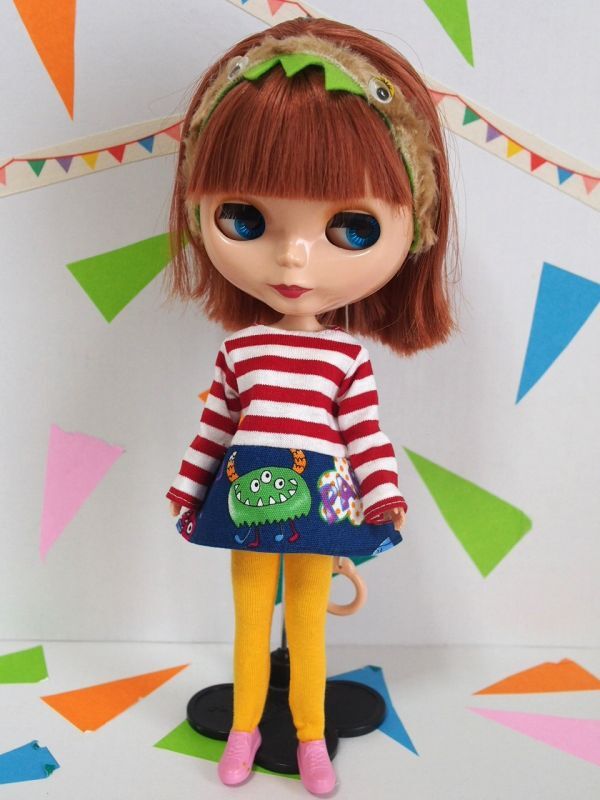 Doll Dressingハンドメイド ネオブライス/リカちゃんサイズお洋服セット人形/衣装アウトフィット/ワンピース/ニット/タイツ/ドール服レトロ