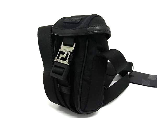 ■極美品■ VERSACE ヴェルサーチ グレカ ナイロン クロスボディ フォンポーチ ショルダーバッグ ポシェットブラック系 BJ9868