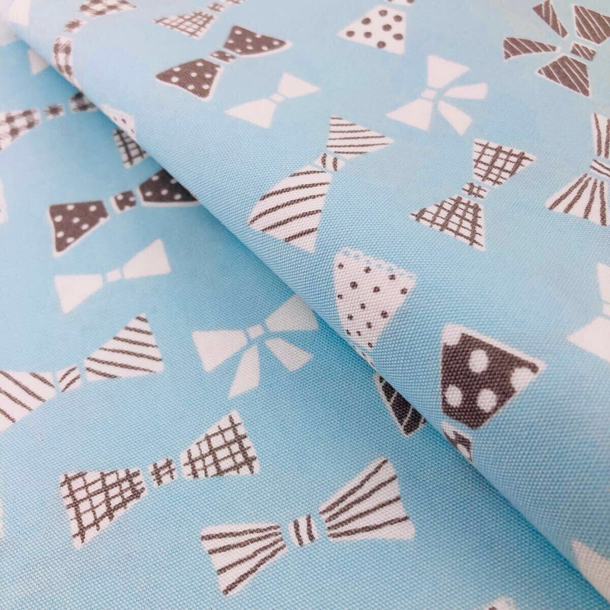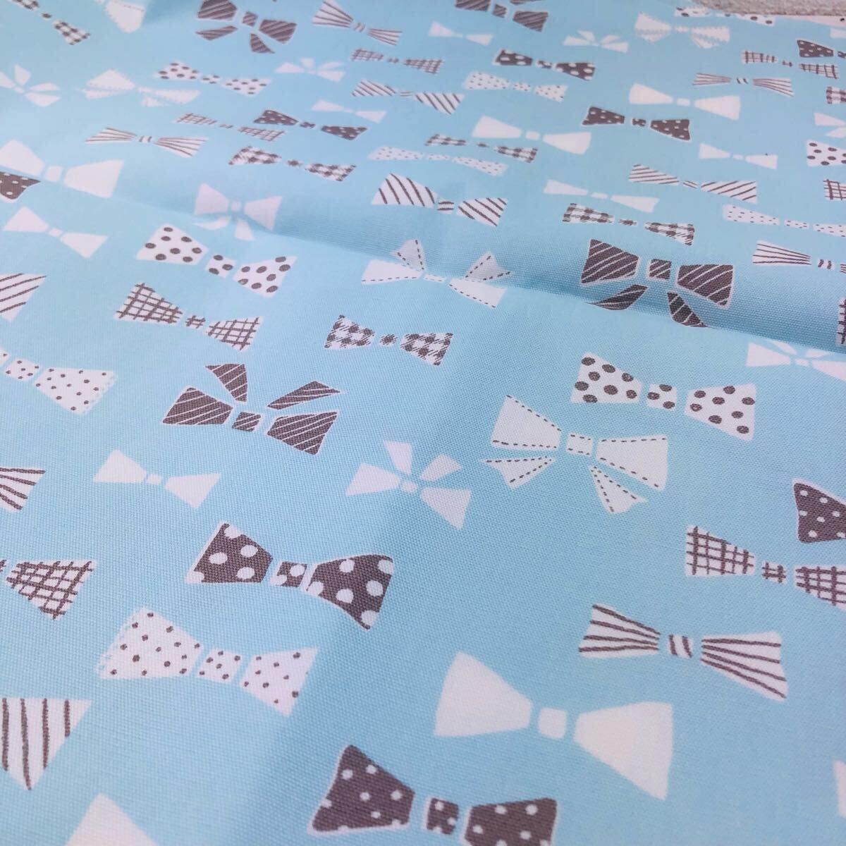 1m 可愛いリボンのオックス 生地 日本製 オックス コットン 生地 ブルー系 リボン柄 リボン