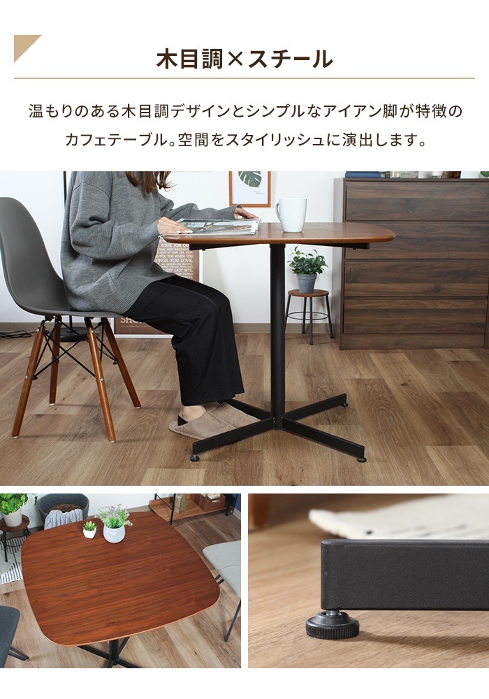 テーブル カフェテーブル 幅75 正方形 角丸 ダイニングテーブル 木目調 スチール脚 コーヒーテーブル おしゃれ インテリア 机 センターテーブル リビングテーブル スクエアテーブル 作業台 1人用 2人用 デスク 勉強机 異素材 モダン カフェスタイル リビング ダイニング ワンルーム 1人暮らし ブラウン ナチュラル |
