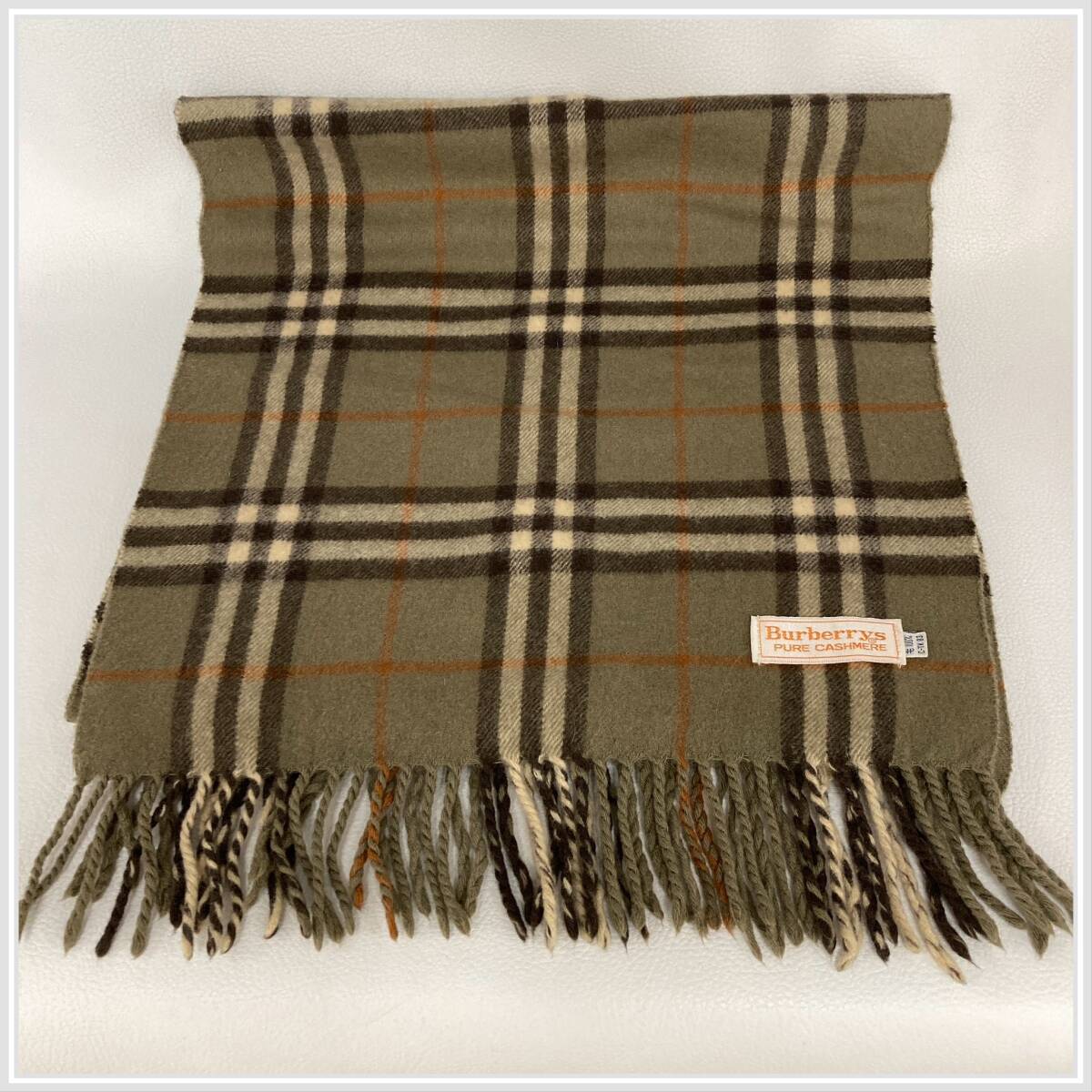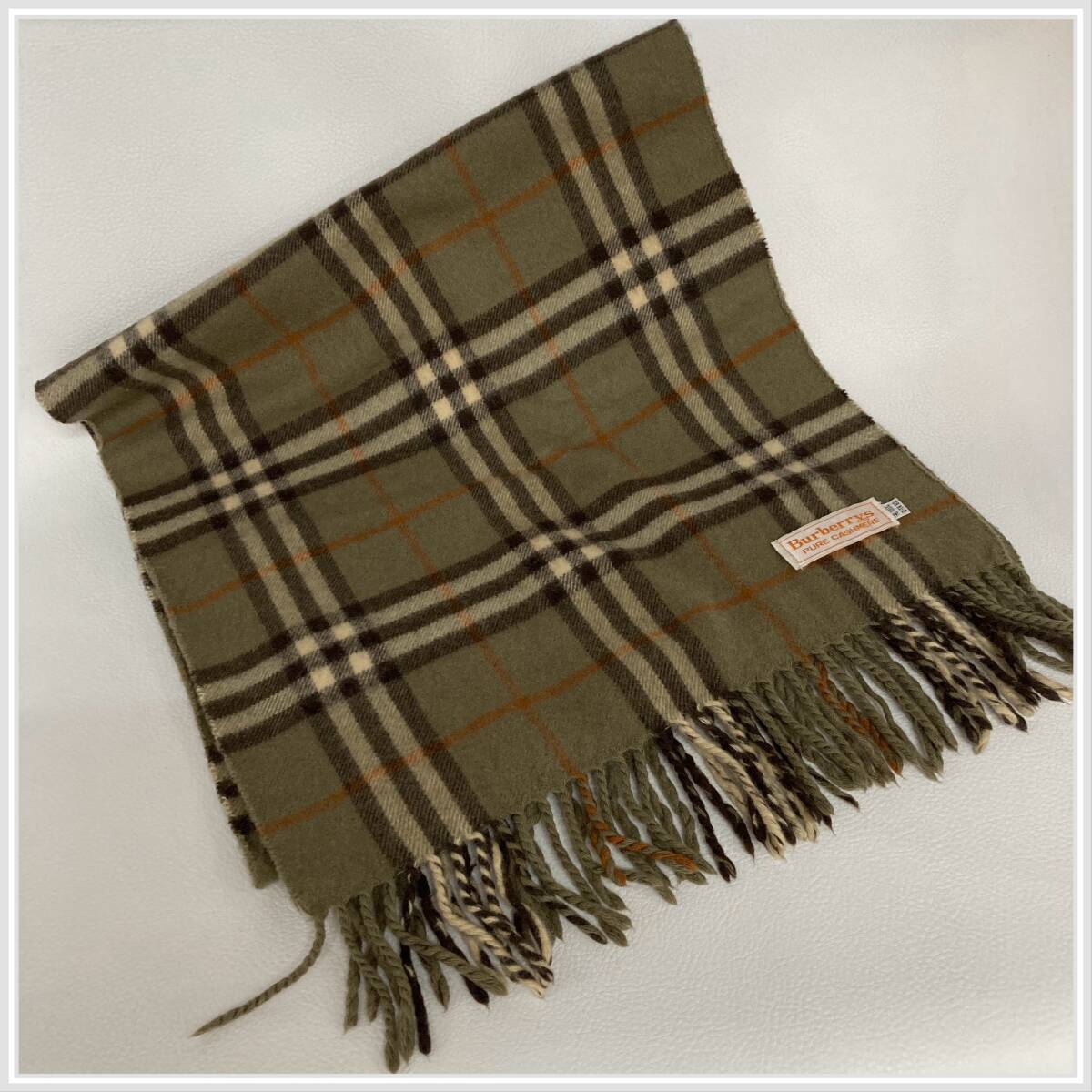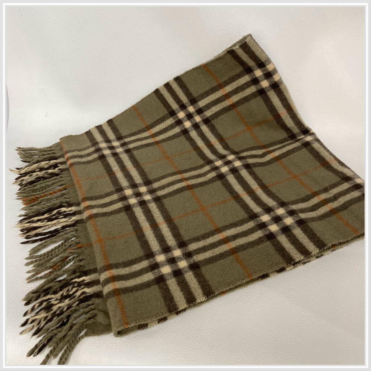 【中古】Burberrys バーバリー マフラー チェックマフラー バーバリーチェック ウール100% グリーン系 |