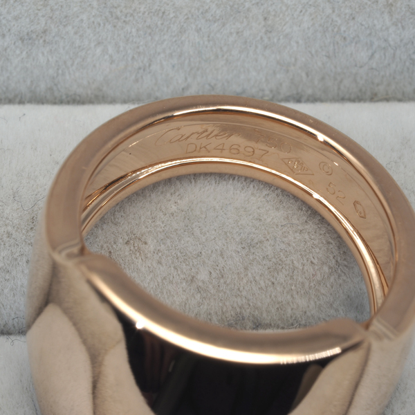 サントスウォッチのデザインをモチーフとしたモダンなカルティエのリングです。重厚かつ上品な輝きがお手元に優雅なアクセントを与えてくれます。 |