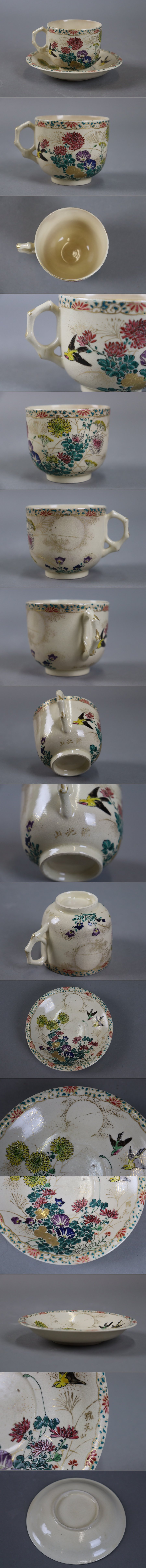 【時代 薩摩焼 錦光山 花鳥図 珈琲カップ カップ&ソーサー】