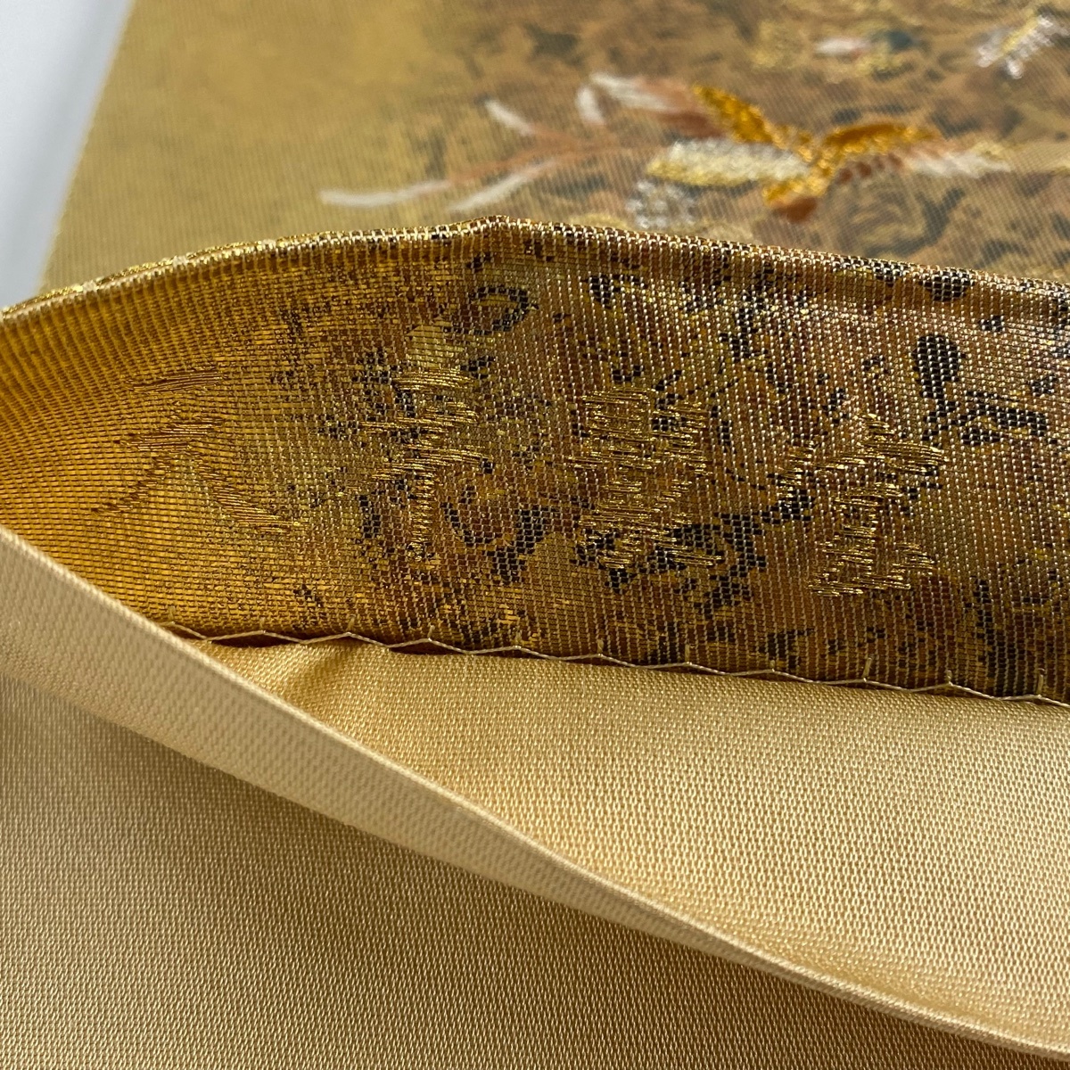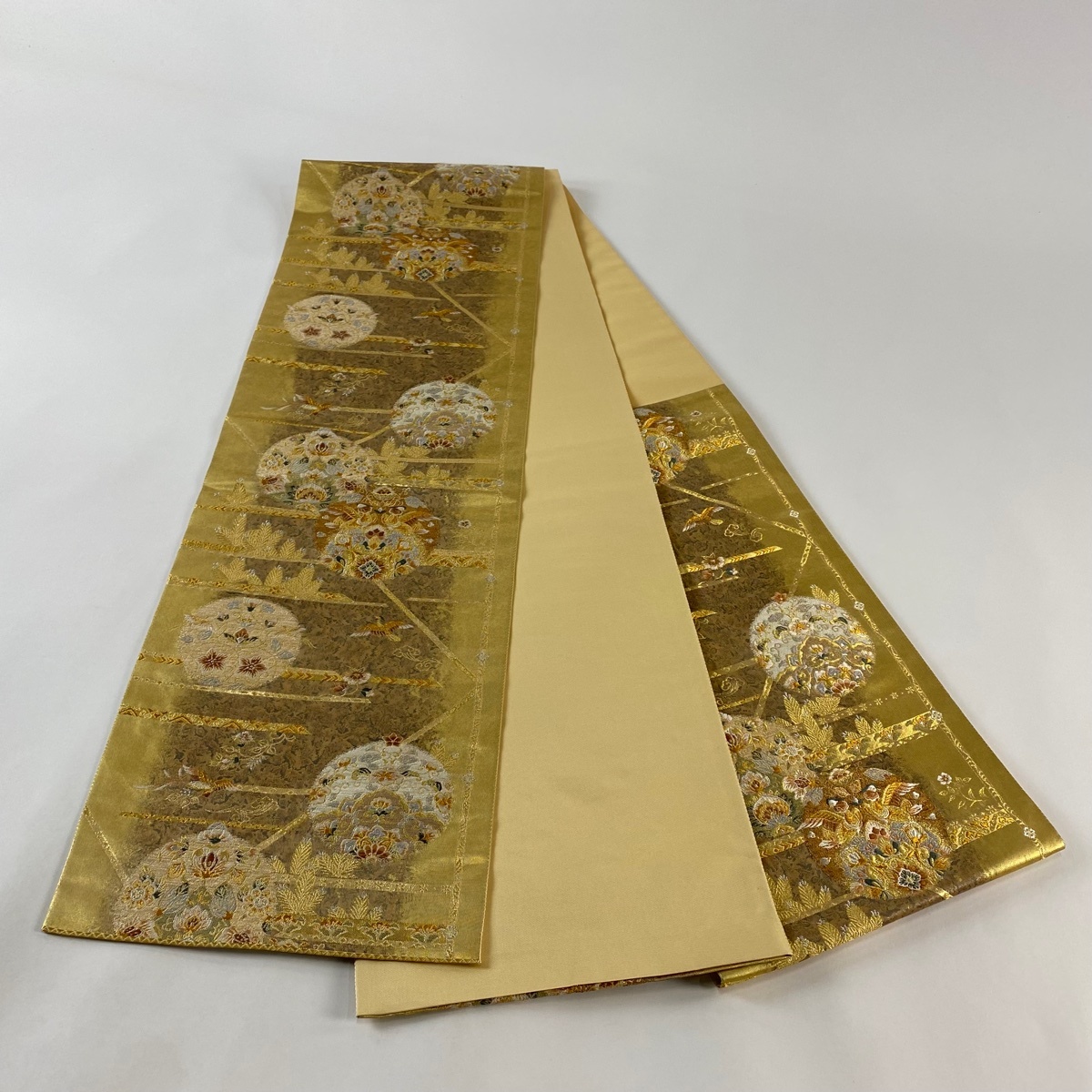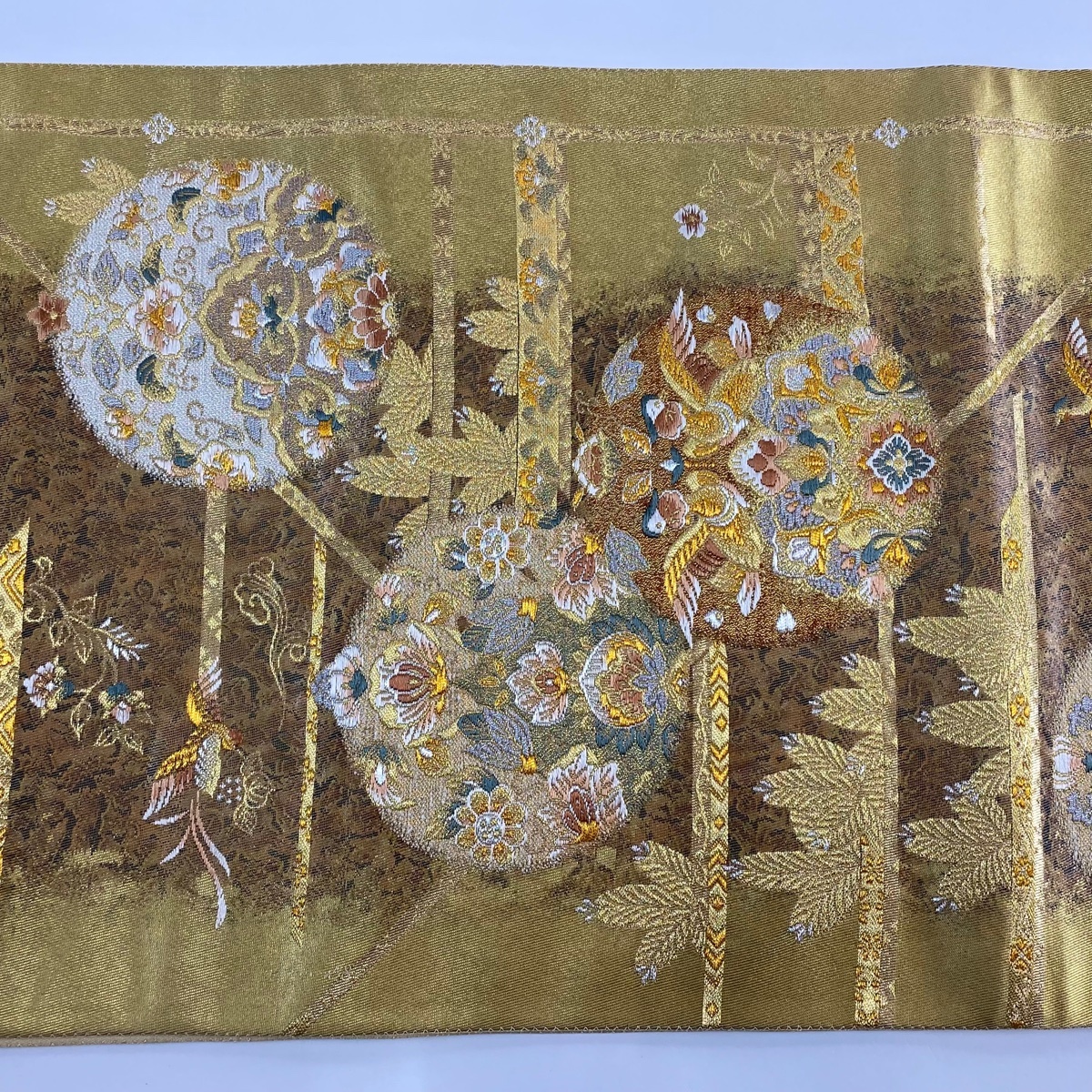 | 袋帯 美品 秀品 丸文 花鳥 刺繍 金銀糸 金色 六通 正絹 【中古】 |