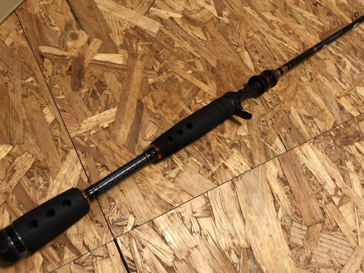 アブガルシアのファンタジスタになります。名前の通りミディアムクラスの巻物全般に使える汎用性の高いロッドです。袋あります。ティップ付近やリールシート付近のコーティングに傷みがありますが、実用に問題はありませんでした。