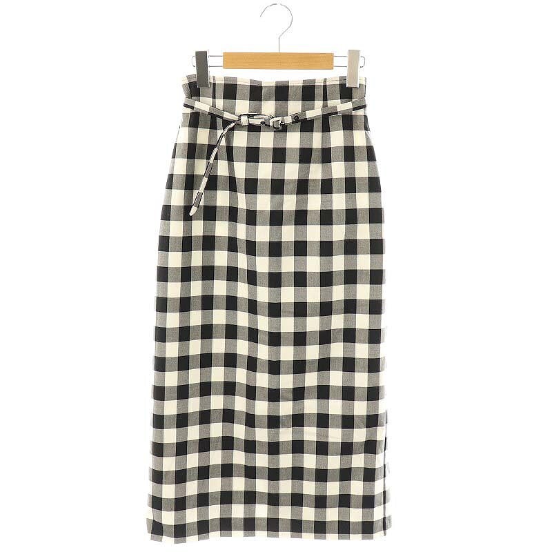 ラ トータリテ La TOTALITE 23SS チェックタイトスカート ベルト付き 36 黒 白 /MI ■OS レディース