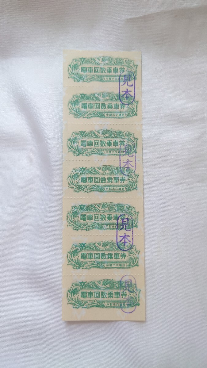 ▽京都市交通局・見本▽電車回数乗車券7枚綴▽軟券
