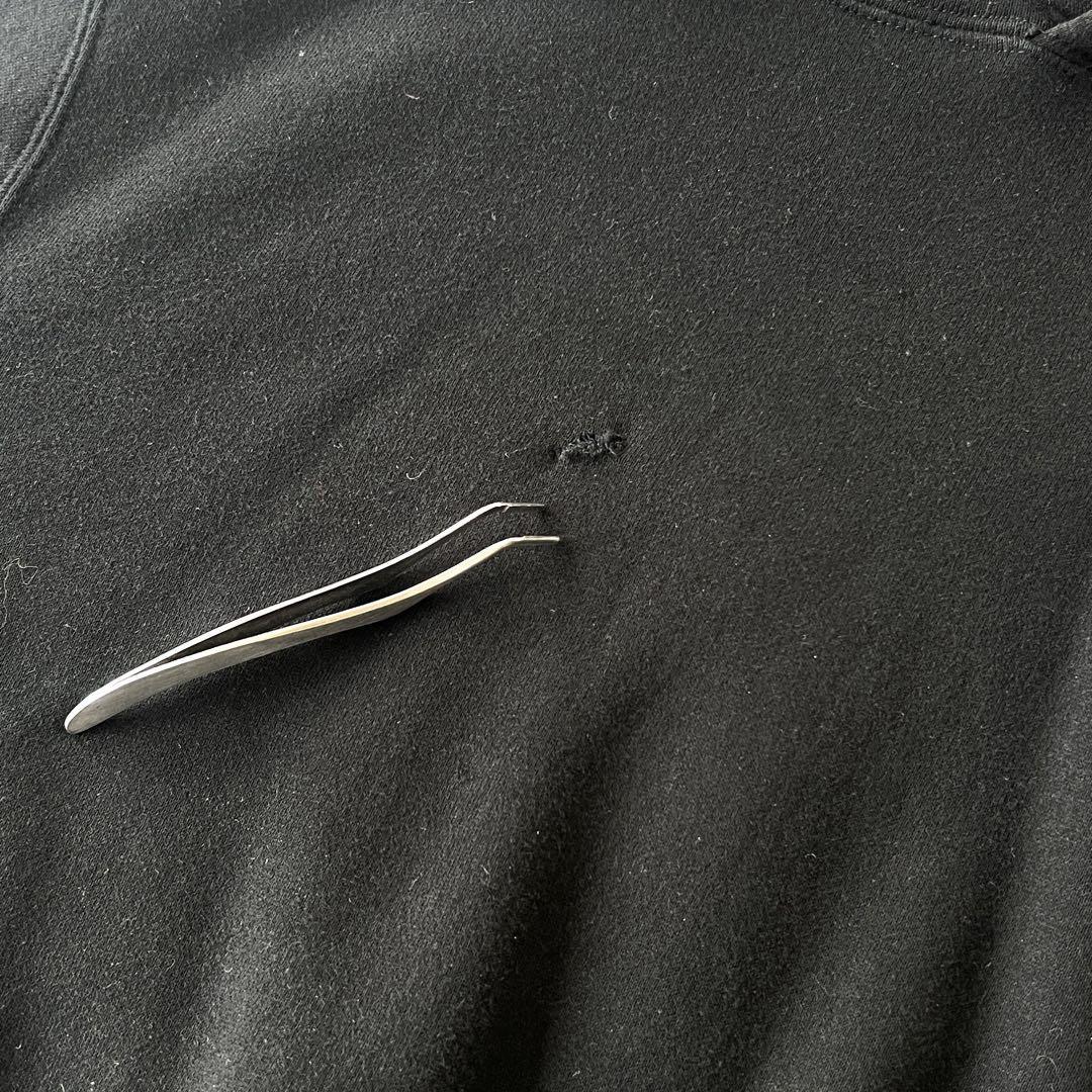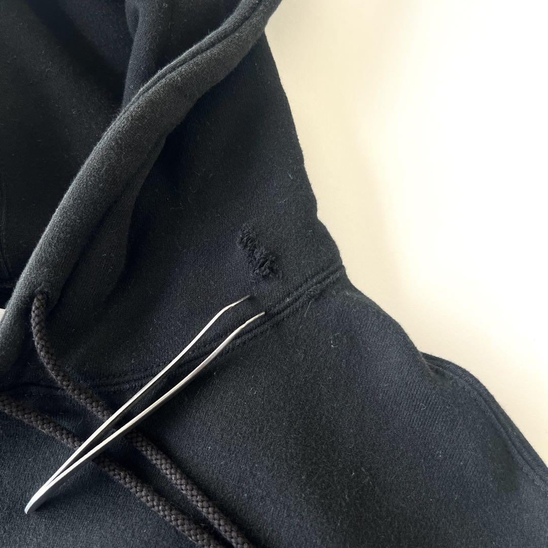 前身頃と首元にほつれがありますが、トレンドのボロ加工としても良い感じです。