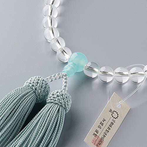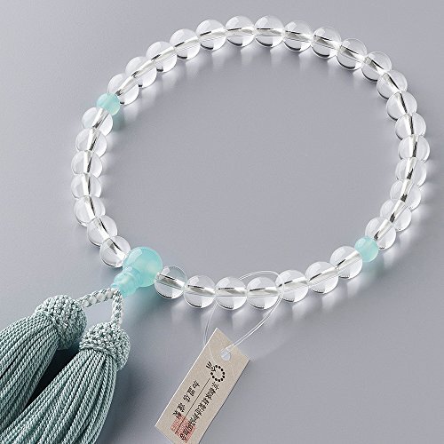 【おすすめ】 8mm玉 すべての宗派で使える 滝田商店 数珠袋付 シーブルーカルセドニー 正絹房 数珠 京念珠 本水晶 仏壇屋