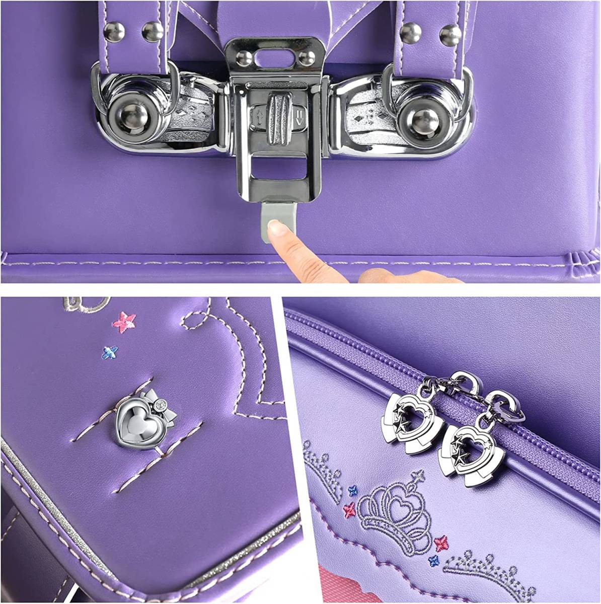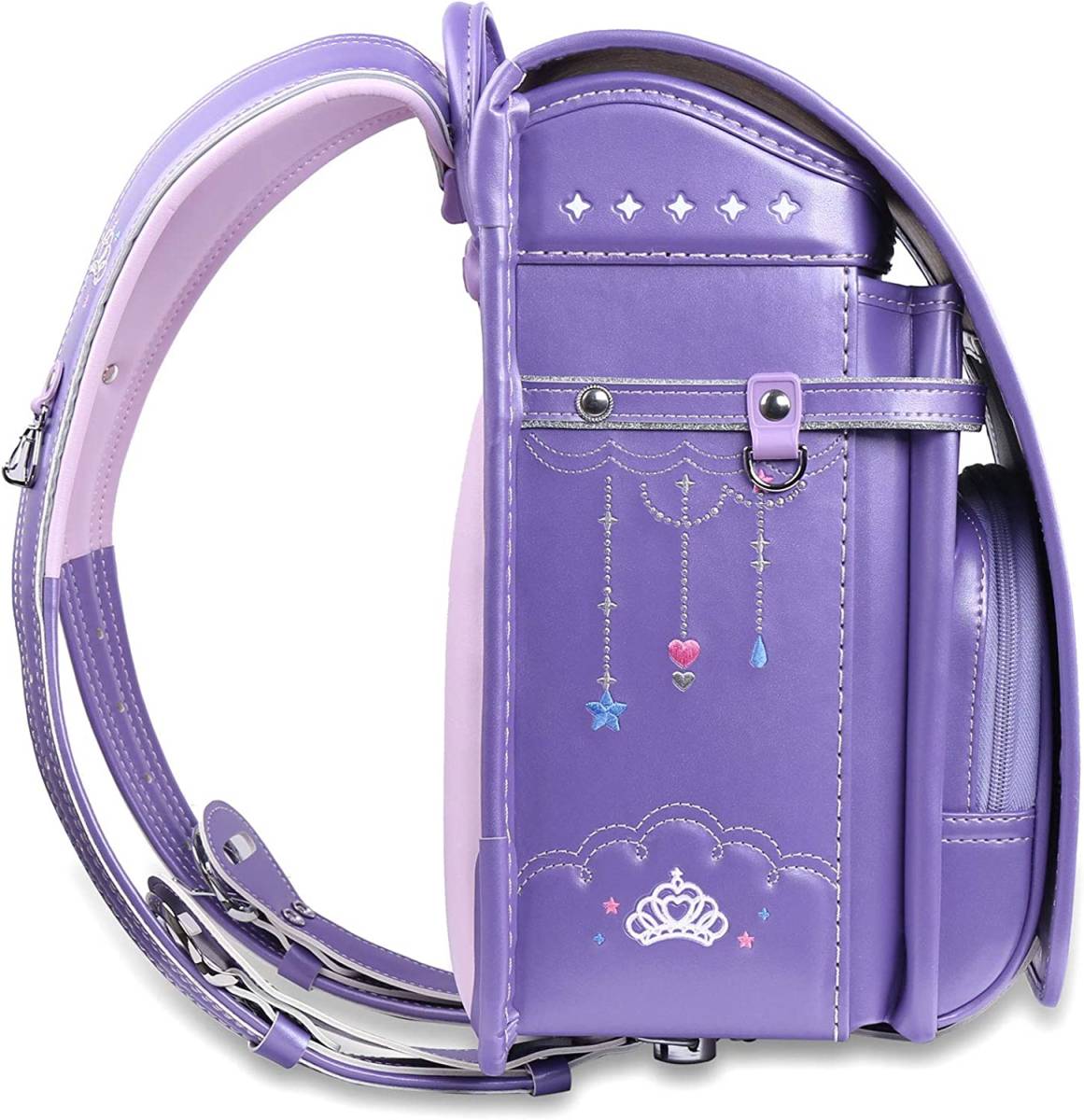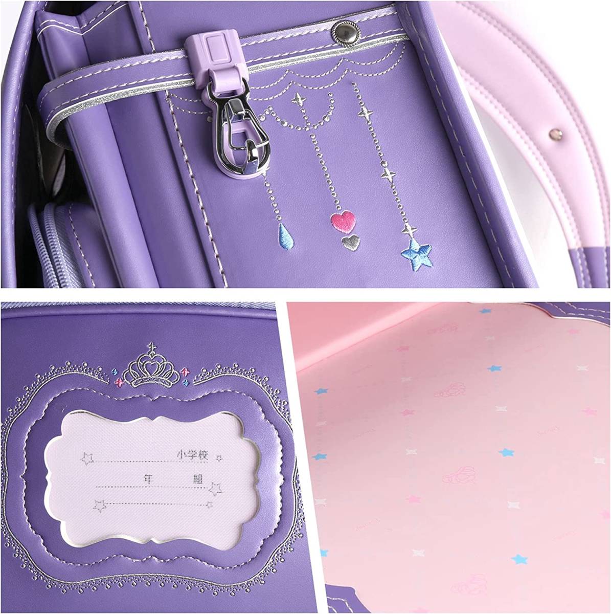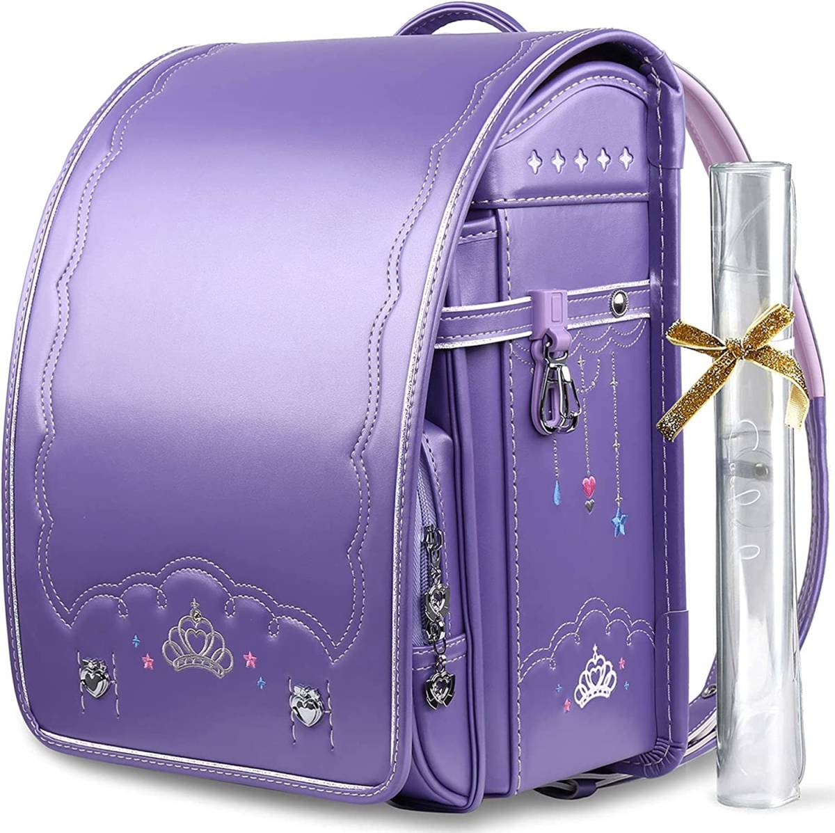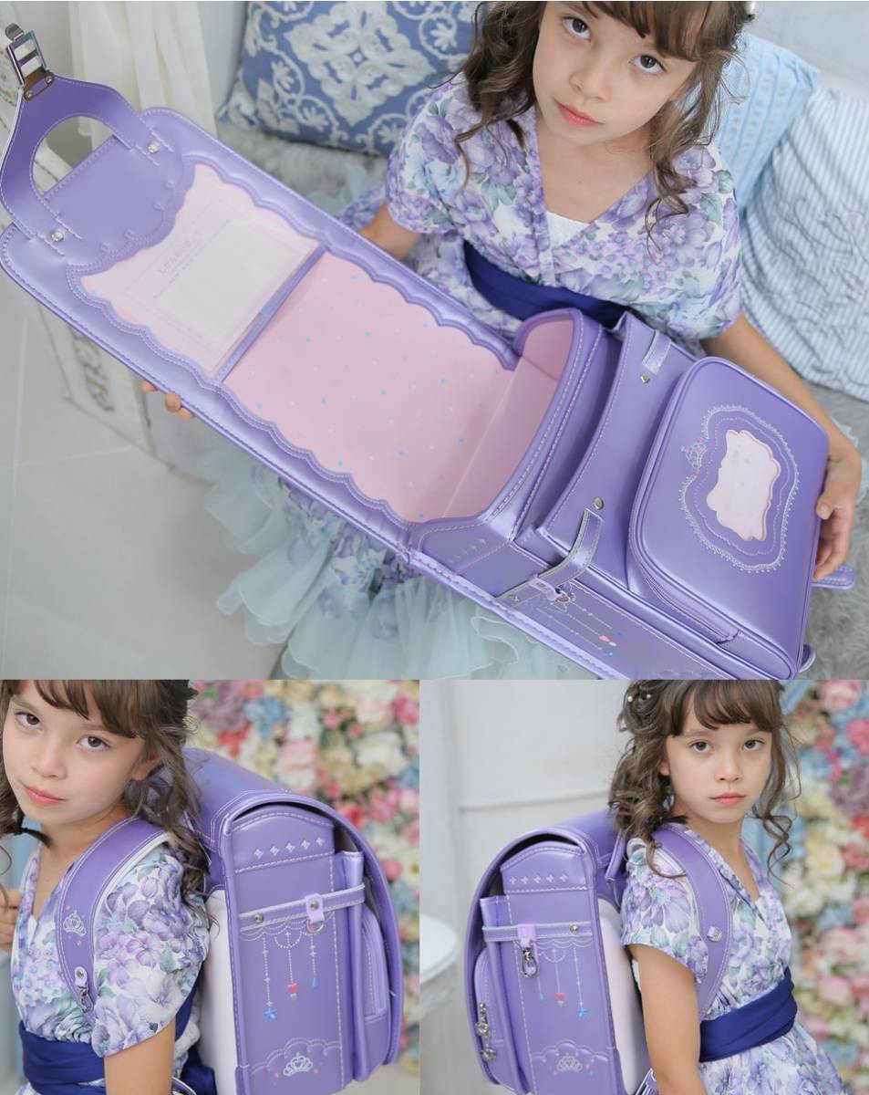 【新品】女の子ランドセル 王冠モデル 高級 大容量 軽量 6年保証 全国送料無料 スクールバック 小学生通学カバン パールパープル②