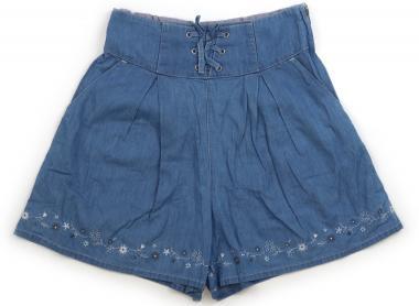 ダンガリー地、ウエストのみ裏地付き。脇ファスナー付きでサイズ調整ゴムが付いています。全体にシワとデニム特有の黄ばみが少し出ています。
